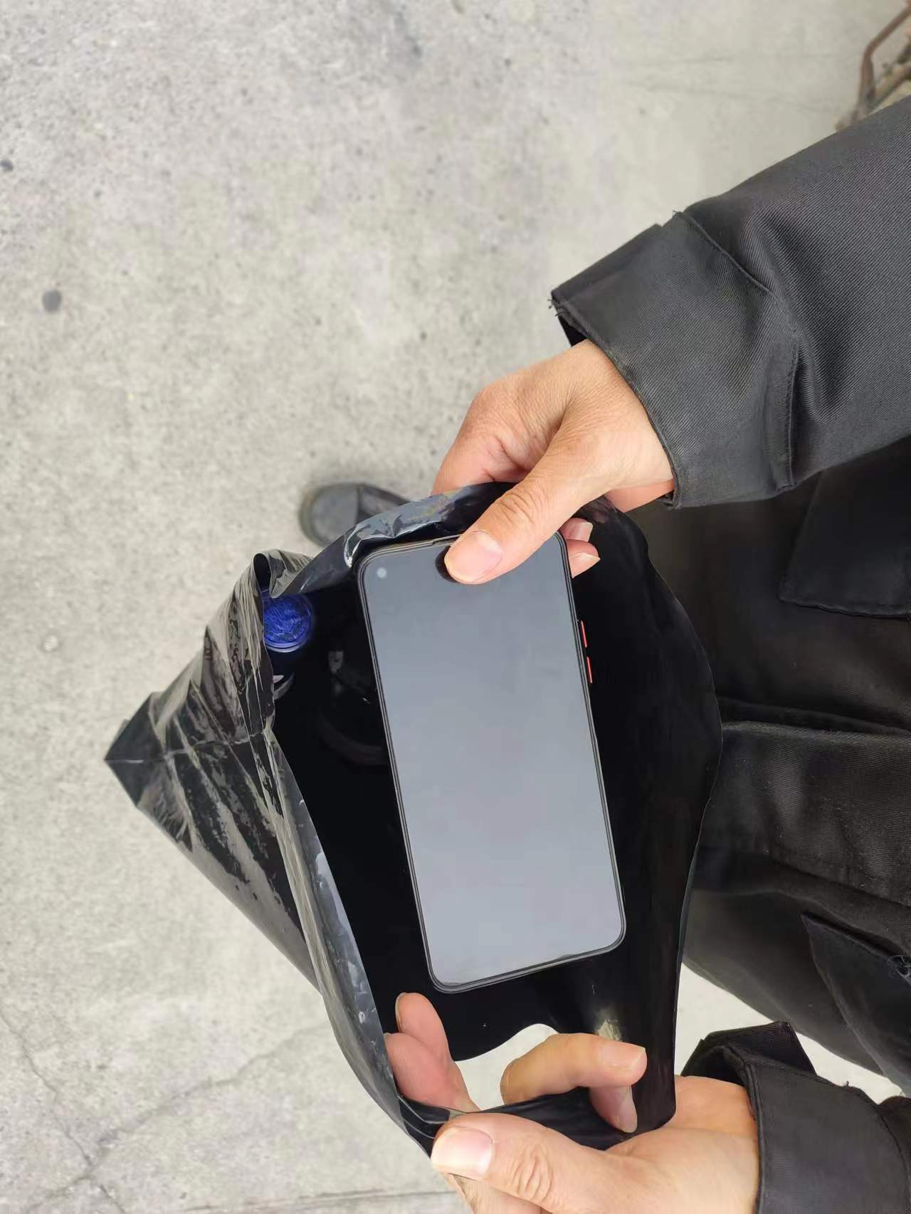 4月12日23:15,公司員工江代華在沈梅東路值勤時(shí),撿到一個(gè)黑色手提袋,內有一部華為手機和兩瓶洋酒,隨即將情況報告了班組長(cháng),并按指示在原地等待。