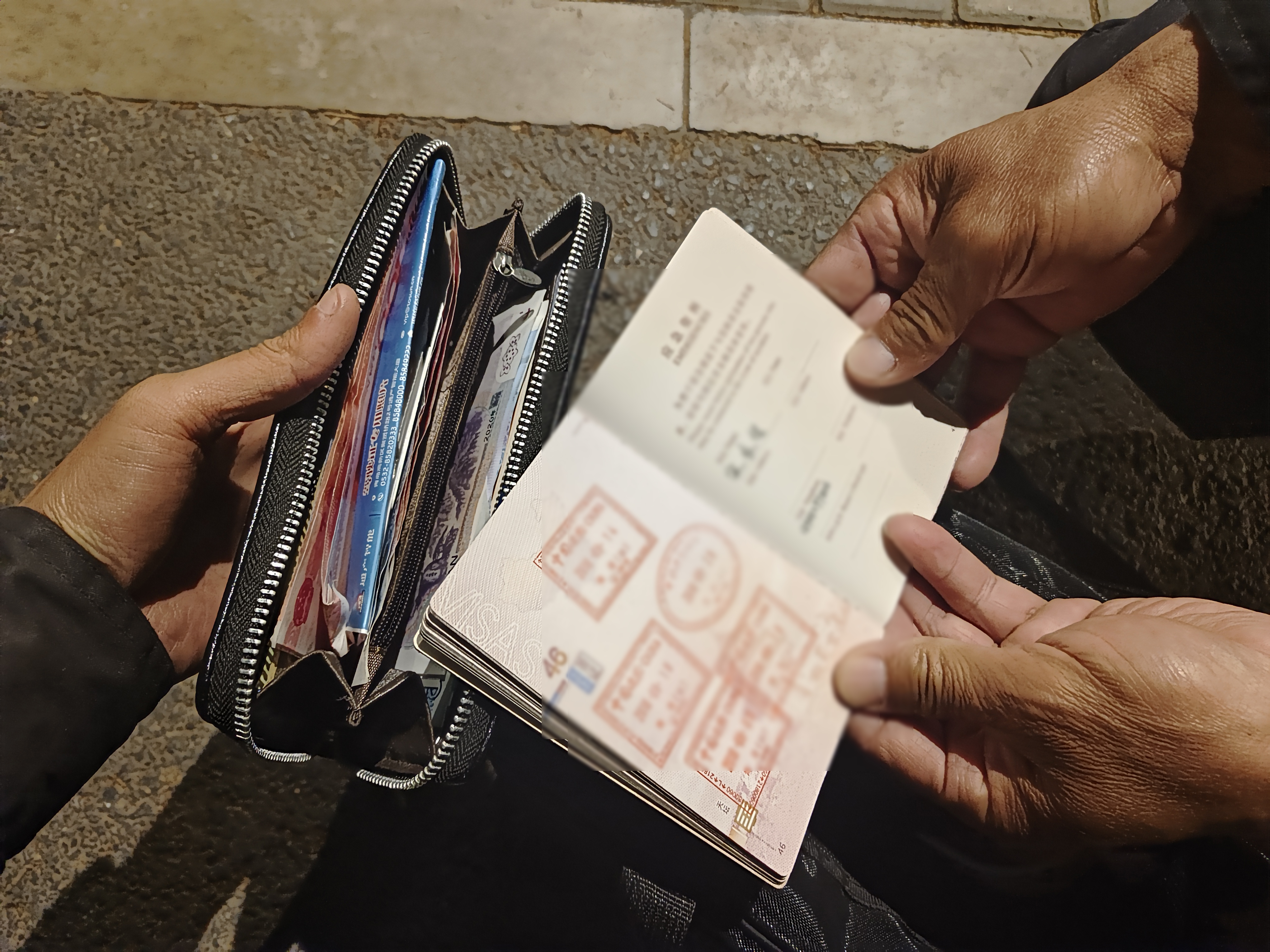 當日21:10,公司員工韓紅剛在張楊北路申崇線(xiàn)公交樞紐附近巡邏時(shí),在一輛共享單車(chē)的車(chē)筐里發(fā)現一個(gè)黑色手提包,內有若干現金、銀行卡及一本護照,而現場(chǎng)沒(méi)有其他人。