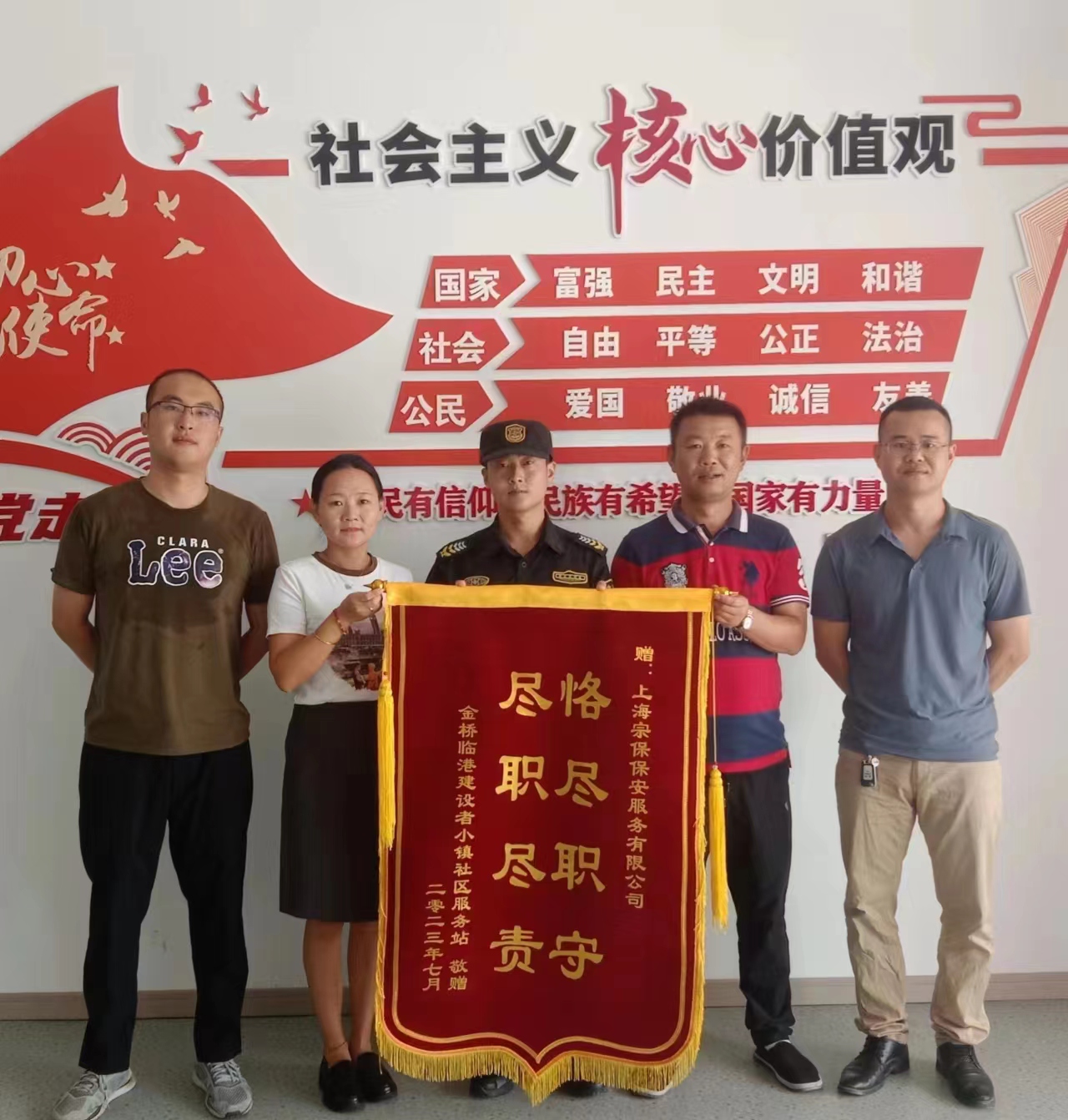 7月27日,浦東金橋臨港建設者小鎮社區服務(wù)站送來(lái)一面繡有“恪盡職守 盡職盡責”的錦旗,感謝軍躍物業(yè)員工周到細致的服務(wù)。