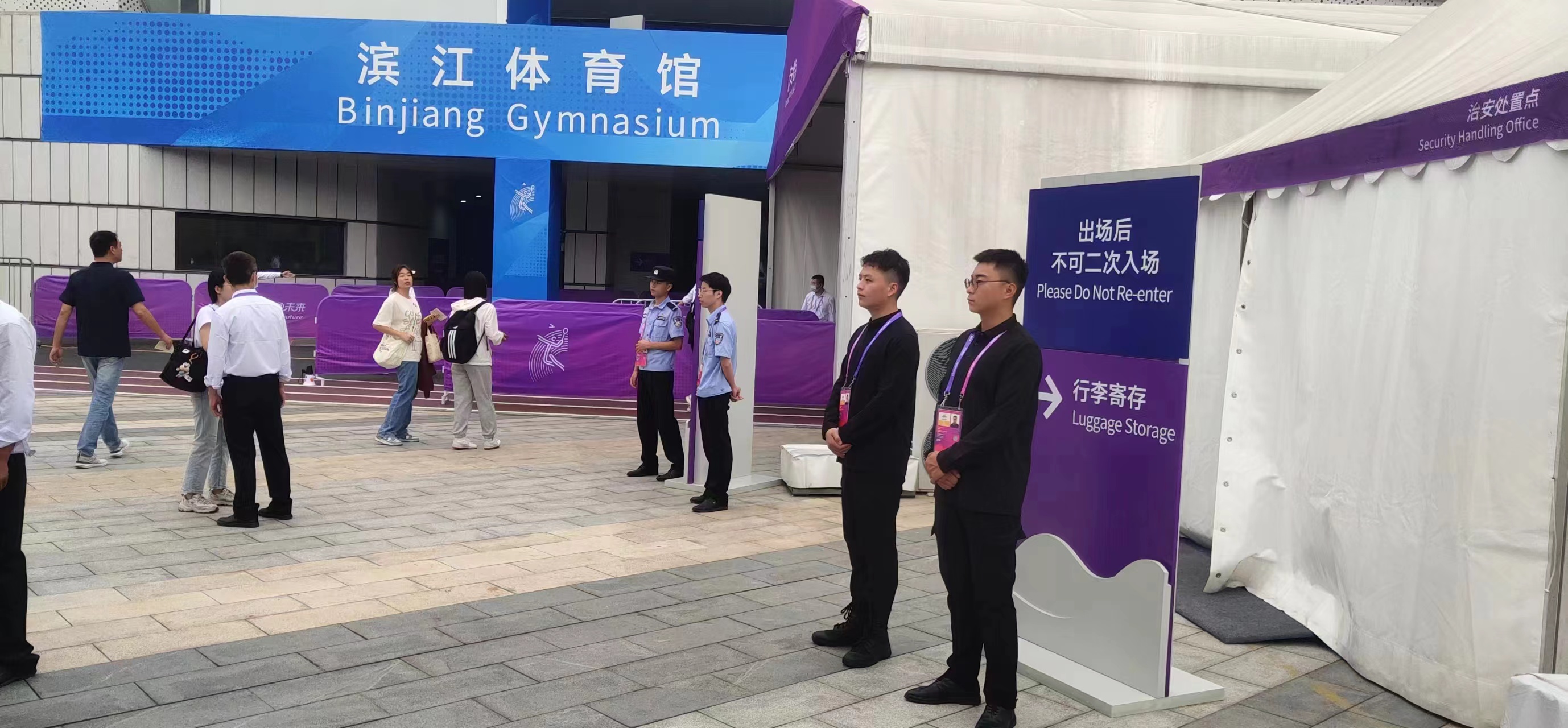 在杭州市濱江區濱江體育館、臨平區臨平體育中心體育館和余杭區杭州師范大學(xué)倉前校區體育館等場(chǎng)館外圍進(jìn)行巡查、引導車(chē)輛有序停車(chē)和維護現場(chǎng)安保秩序。
