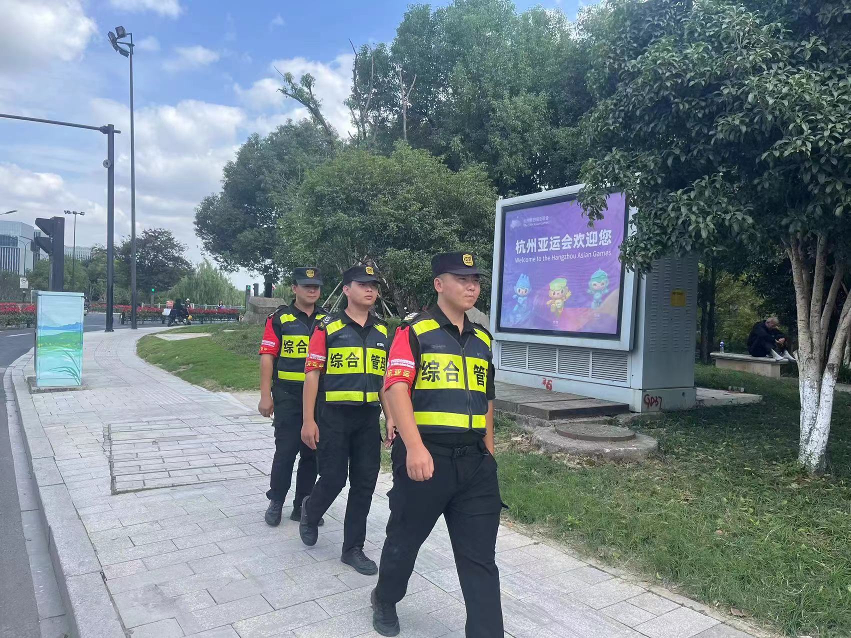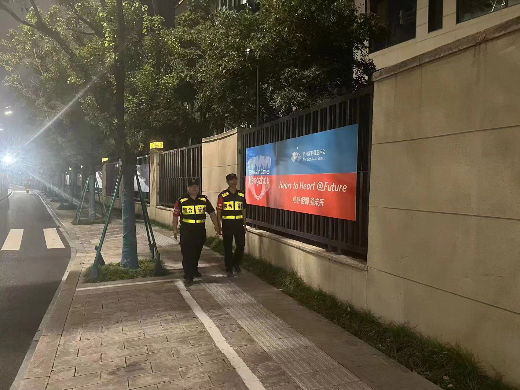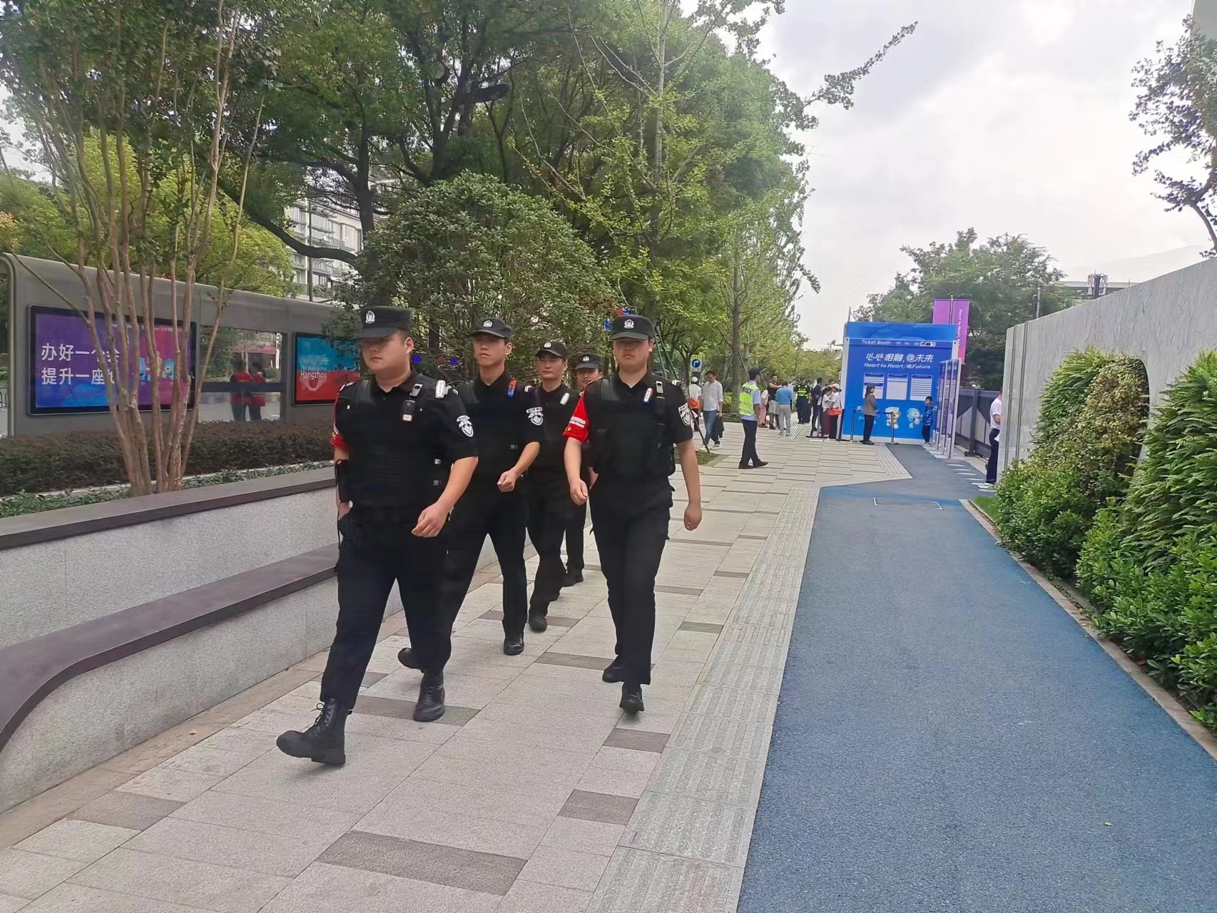 在杭州市臨平區和余杭區等有關(guān)的地鐵站、商貿中心、商務(wù)辦公中心、旅游景點(diǎn)等人員密集區域以及亞運通道重要路段,開(kāi)展安全巡邏、可疑人員排查和日常序化巡查工作。