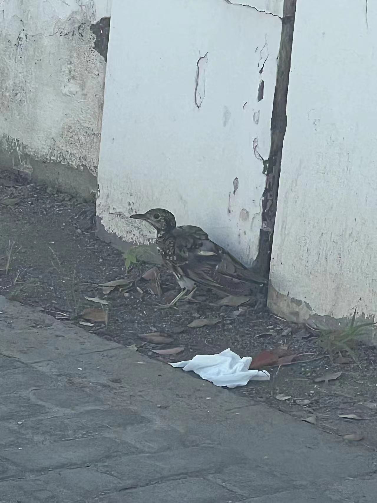 當天14:30,公司員工張宇航和康德剛在天驕路段巡查時(shí),發(fā)現路邊墻根處有一只長(cháng)腿橄欖褐色的鳥(niǎo),不飛行不走動(dòng),眼睛驚恐地看著(zhù)四周。兩人見(jiàn)狀上前察看,這只鳥(niǎo)身上有傷,已經(jīng)無(wú)法自行飛起。因不知道是什么鳥(niǎo),兩人就上網(wǎng)查詢(xún),確認是國家二級保護動(dòng)物—虎斑地鶇,便趕緊找來(lái)一紙箱保護好,隨即向蘆潮港派出所值班民警報告了情況,并按指示將虎斑地鶇送到派出所。