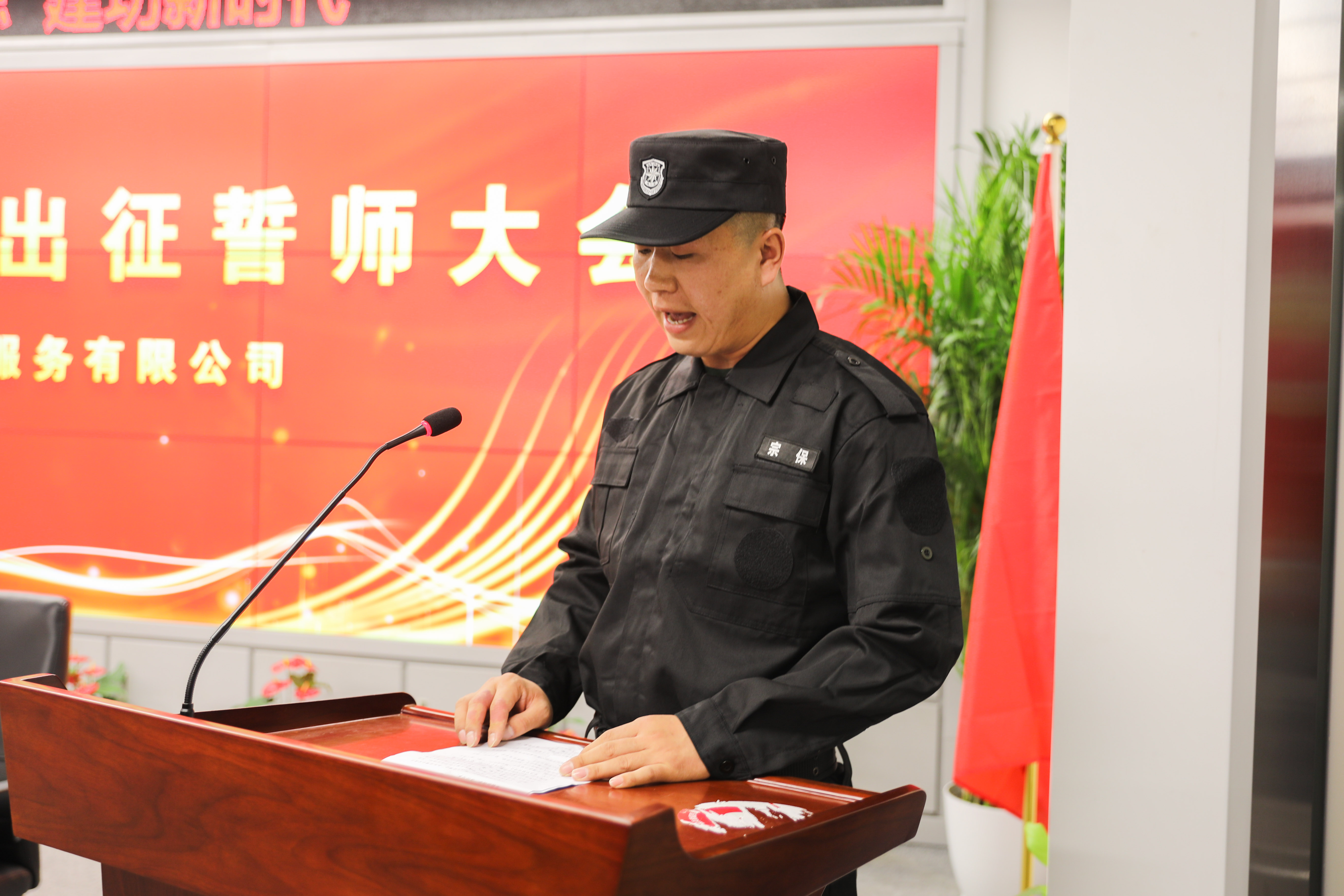 誓師大會(huì )在莊嚴的國歌聲中拉開(kāi)序幕,副總經(jīng)理侯留勇首先介紹了進(jìn)博會(huì )的基本情況,明確了公司安保輔助工作任務(wù),強調了公司員工進(jìn)博會(huì )安保期間的管理規定,要求全體參與進(jìn)博安保的員工聽(tīng)從指揮、服從管理,自覺(jué)接受督導檢查,不忘初心、忠誠履職,認真細致熱情地做好服務(wù)保障工作。