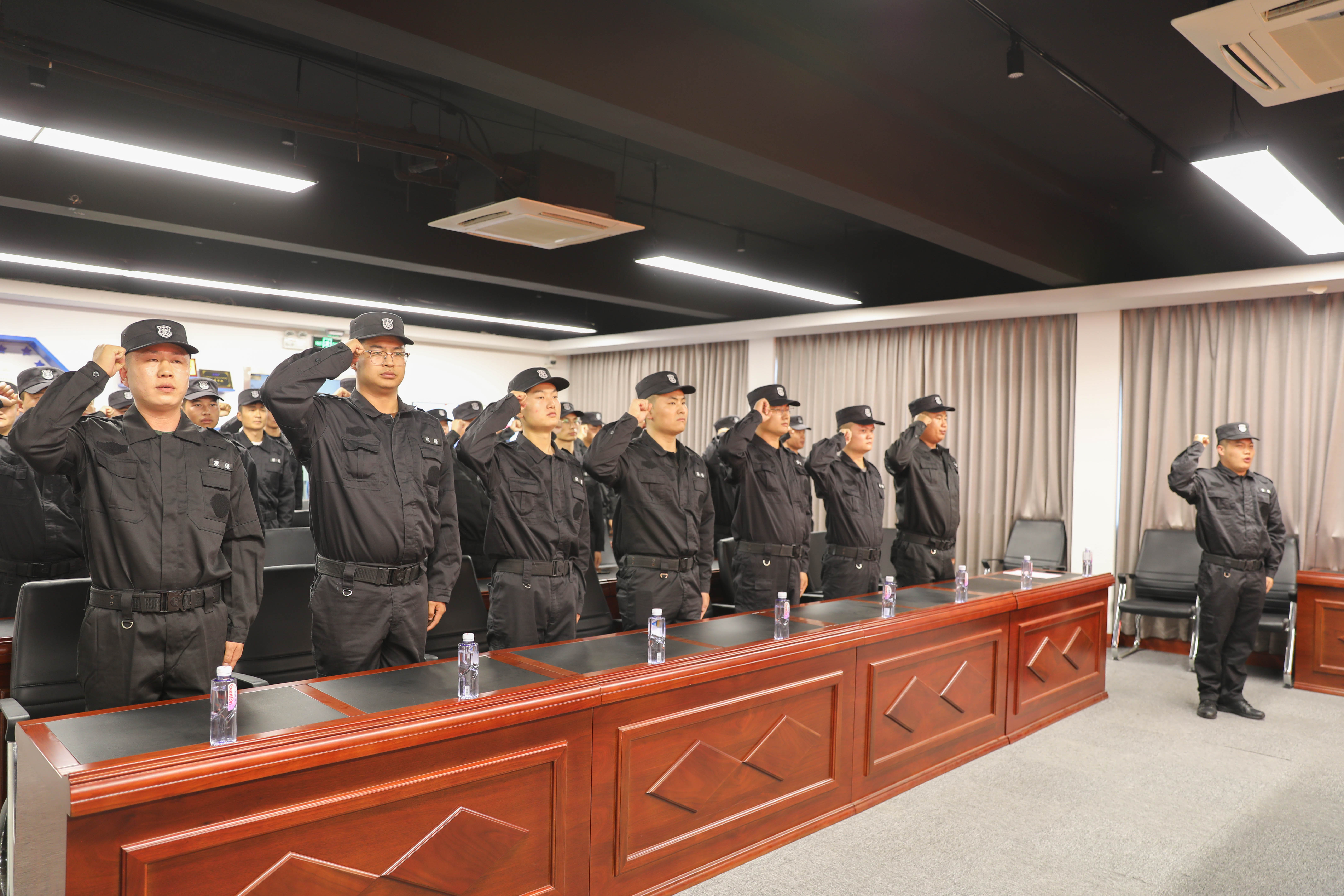 最后,公司董事長(cháng)王耀作動(dòng)員,要求全體參與進(jìn)博安保工作的員工要充分發(fā)揚退役軍人創(chuàng )辦企業(yè)素質(zhì)過(guò)硬、不怕吃苦、勇于擔當、主動(dòng)善為的精神,以更高的工作標準、更嚴的工作要求、更實(shí)的工作作風(fēng),全力以赴配合做好進(jìn)博會(huì )安保秩序維護工作。同時(shí),王耀董事長(cháng)代表公司向全體參與進(jìn)博安保的員工表示衷心的感謝,并預祝各位員工圓滿(mǎn)完成好組委會(huì )賦予公司的各項安保工作任務(wù)。