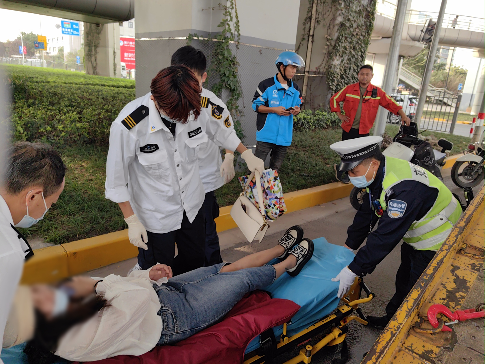 很快,120急救車(chē)和民警趕到現場(chǎng),醫護人員對受傷女駕駛員進(jìn)行急救處理,初步確認其左側眉骨和鎖骨骨折。隨后,王團結和阿克補萬(wàn)又協(xié)助醫護人員將傷者抬上救護車(chē),送往醫院緊急救治。
