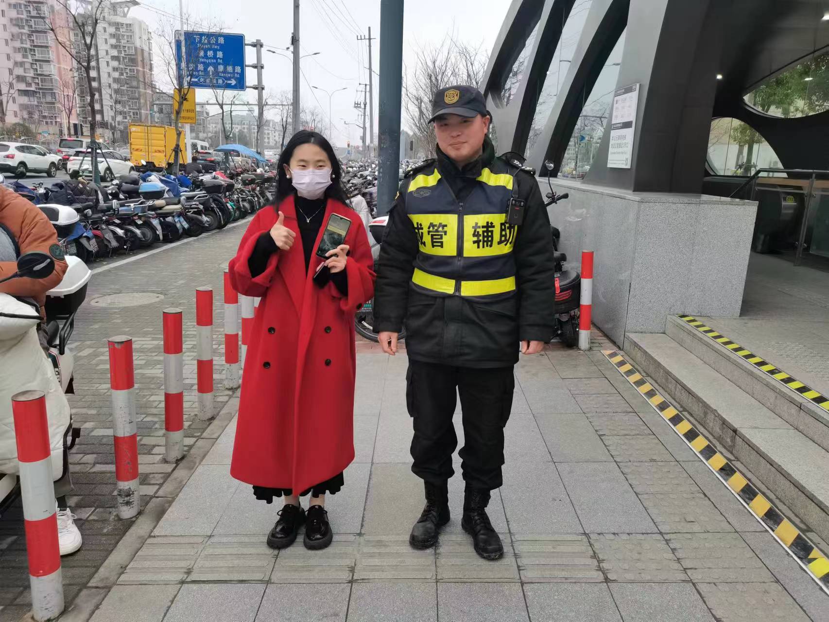 1月18日21:05,宗保公司駐浦東新區康橋市容項目員工蘇照義巡查至18號線(xiàn)滬南路地鐵站5號口時(shí),撿到一部灰色華為手機??紤]到失主可能會(huì )返回尋找,便在原地等待。過(guò)了30分鐘左右,一女子打來(lái)微信電話(huà)尋找手機,語(yǔ)氣顯得非常急切。蘇照義一邊表明身份安慰她,一邊與她約好碰面時(shí)間地點(diǎn)。1月19日14:30,一位身穿紅色上衣的女子趕來(lái)認領(lǐng)手機,解鎖手機鎖屏密碼后,蘇照義就將手機交還給了她。 女子拿著(zhù)失而復得的手機,連連向公司員工蘇照義表示感謝。