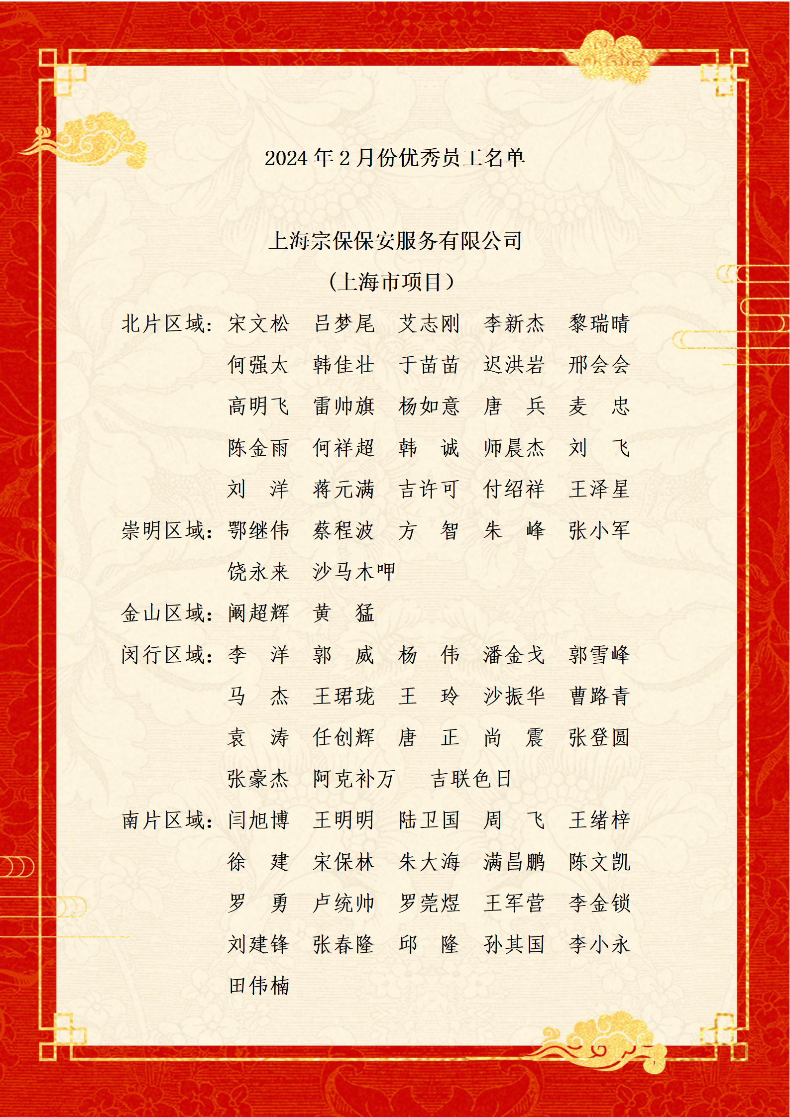 2月份,公司廣大員工根據甲方的任務(wù)要求,按照公司的部署安排,積極踐行公司“誠信為本 服務(wù)至上”的經(jīng)營(yíng)理念,講大局、講奉獻,擔當作為、務(wù)實(shí)肯干,助力完成了春節期間秩序維護、市政協(xié)第十四屆二次會(huì )議、張惠妹ASMR世界巡回演唱會(huì )等多個(gè)大型活動(dòng)臨時(shí)保障任務(wù),全力配合甲方做好了城市管理輔助、治安巡邏聯(lián)防、物業(yè)服務(wù)保障、生態(tài)環(huán)境保護、高鐵線(xiàn)路巡防等工作。期間,涌現出了一批盡心履責、崗位建功、拾金不昧、熱心助人的優(yōu)秀員工和先進(jìn)典型。