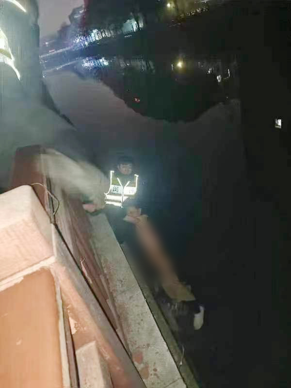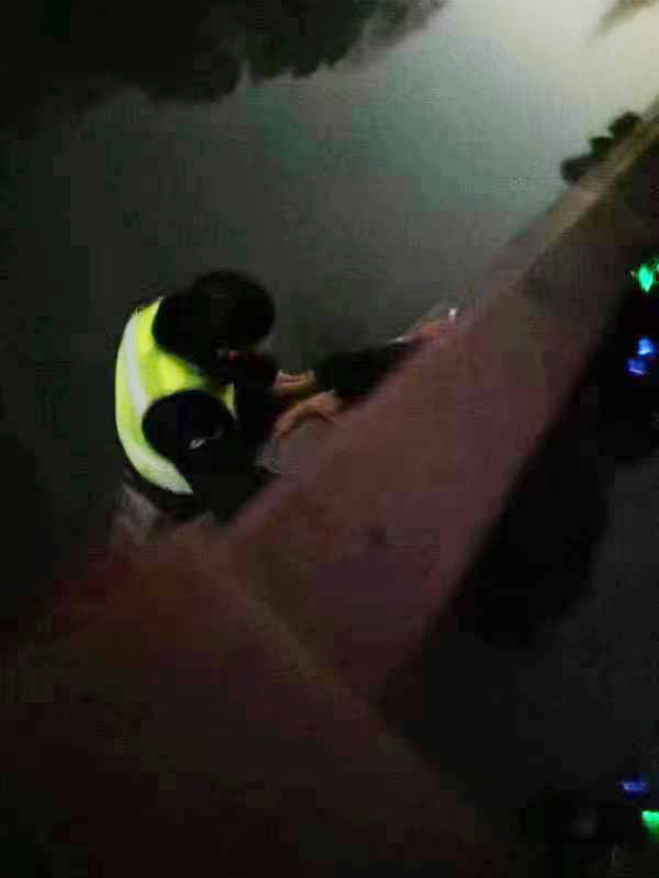 當日23:44,公司員工薛峰崗和馬新強巡邏時(shí)接到虹橋指揮室指令,稱(chēng)新涇港河有一名醉酒男子欲跳河輕生,請立即前往救助。兩人聞?dòng)嵙⒓蹿s到事發(fā)地點(diǎn),發(fā)現一男子已翻過(guò)河堤護欄,將要掉入河中。薛峰崗和馬新強見(jiàn)狀快步上前緊緊抓住男子手臂,并將情況報告虹橋指揮室,同時(shí)呼叫附近同事前來(lái)支援。