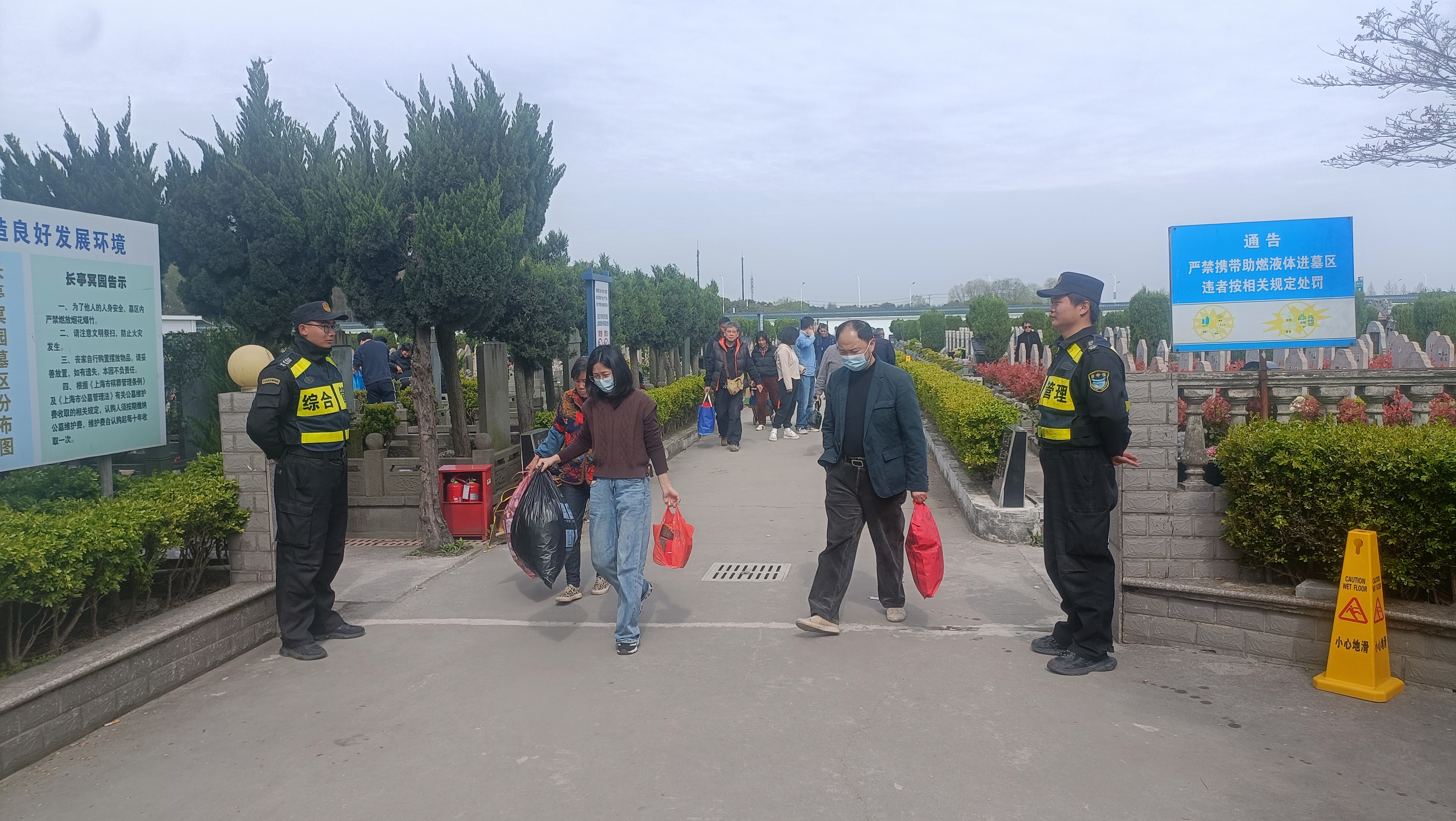 清明祭掃期間,公司協(xié)助參與上海、浙江杭州等地30多個(gè)公墓陵園的秩序維護。員工們堅守崗位、神情肅然,開(kāi)展祭掃防火宣傳,指引車(chē)輛有序停放,勸導市民群眾文明祭掃,助力完成了清明節祭掃安全保障工作,得到了甲方領(lǐng)導的好評。