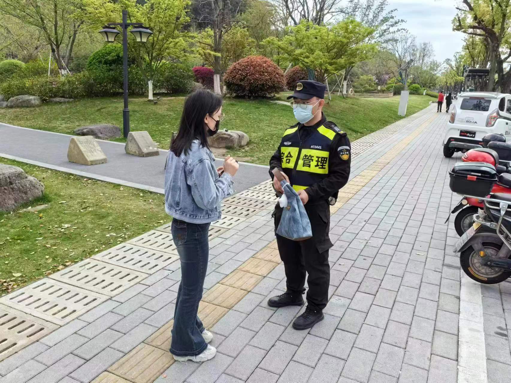 4月3日14:27,浙江民泰公司駐杭州市臨平區東湖市容項目員工馬玉堯在星光街彩虹橋附近巡查時(shí),撿到一個(gè)天藍色挎包,詢(xún)問(wèn)周?chē)藛T無(wú)人認領(lǐng)后,便報告了班組長(cháng),并在班組長(cháng)的指導下,開(kāi)啟執法記錄儀對包內物品進(jìn)行了檢查,內有兩部華為手機、一個(gè)充電寶、若干現金和一些化妝品等物品,但未發(fā)現有關(guān)失主的身份信息。馬玉堯考慮到失主丟失貴重物品可能會(huì )返回尋找,就決定在原地等待。大約過(guò)了20分鐘,包內其中一部手機鈴聲響起。馬玉堯接通電話(huà),對方女聲自稱(chēng)是失主,語(yǔ)氣顯得十分焦急。馬玉堯細聽(tīng)女子所述后,就與女子約定了碰面地點(diǎn)。不一會(huì )兒,一位身穿牛仔外套的女子趕到現場(chǎng),馬玉堯再次核對確認了相關(guān)信息,隨即把撿到的挎包及錢(qián)物悉數交還給了她。女子非常高興,激動(dòng)地連連向民泰員工致謝。