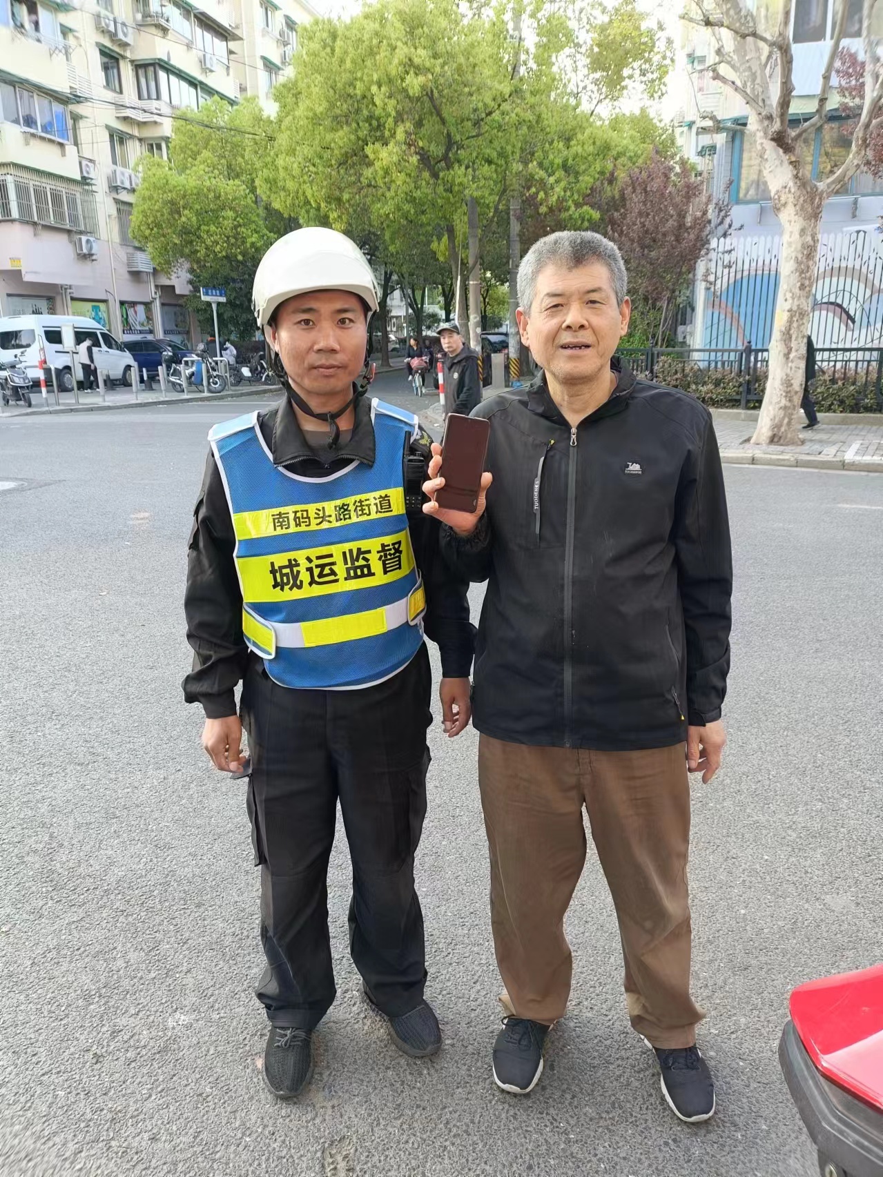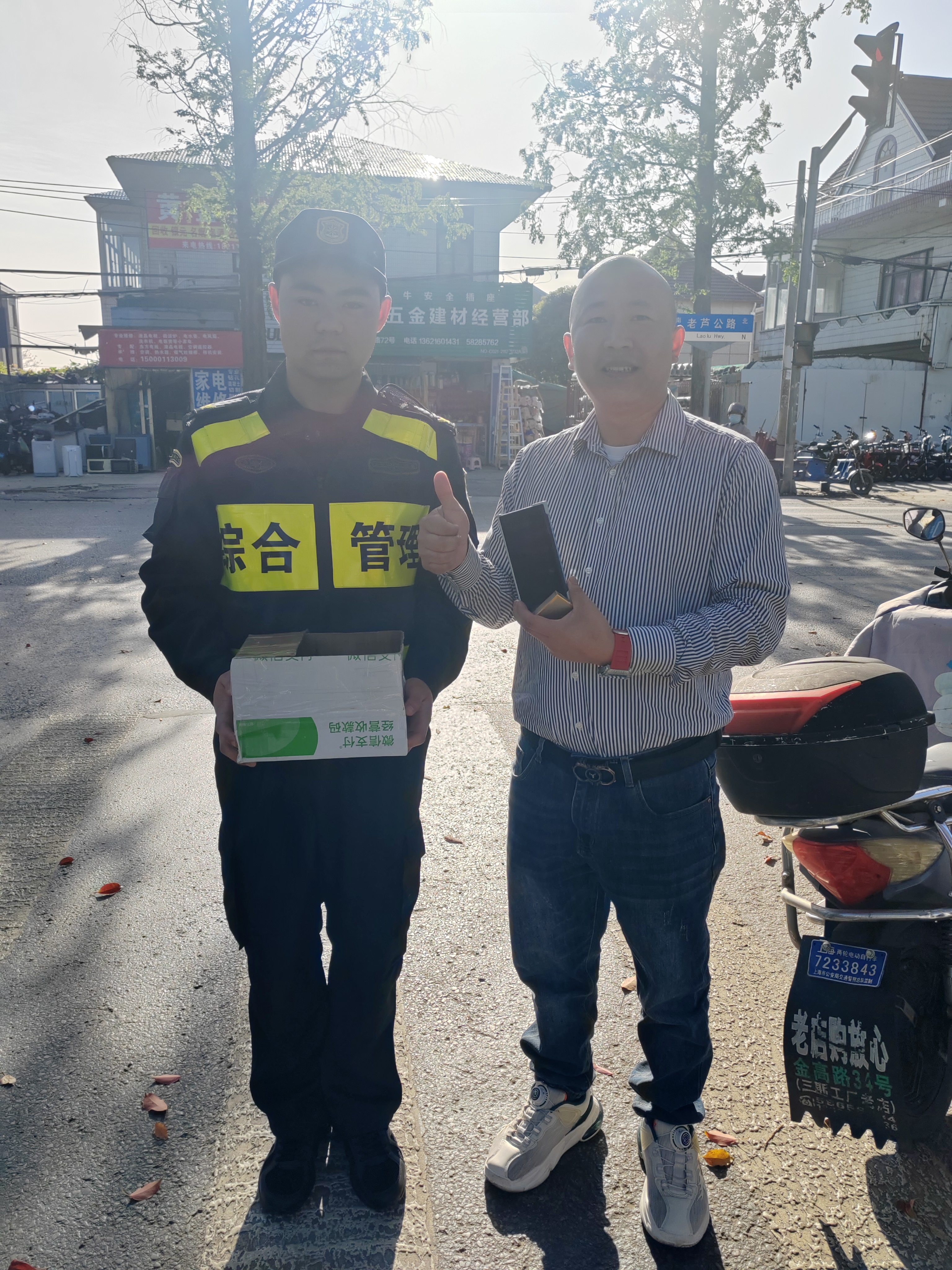 4月9日16:40,宗保公司駐浦東新區南碼頭城運網(wǎng)格項目員工徐寶輝在東三里橋路膠南路路口巡查時(shí),撿到一部華為手機,報告組長(cháng)后便在原地等待失主。半小時(shí)后,一位自稱(chēng)是失主的男子打來(lái)電話(huà),聽(tīng)口吻像是位老人,徐寶輝詢(xún)問(wèn)了丟失手機的基本特征,就與他約好碰面時(shí)間地點(diǎn)。過(guò)了一會(huì ),一位頭發(fā)花白的老人來(lái)到約定地點(diǎn)。徐寶輝確認其是失主后,就把手機交還給了他。為表示感謝,老人要發(fā)微信紅包給徐寶輝,被他婉言謝絕了。臨走前,老人豎起拇指,口中念念有詞,連連為宗保員工拾金不昧的行為點(diǎn)贊。