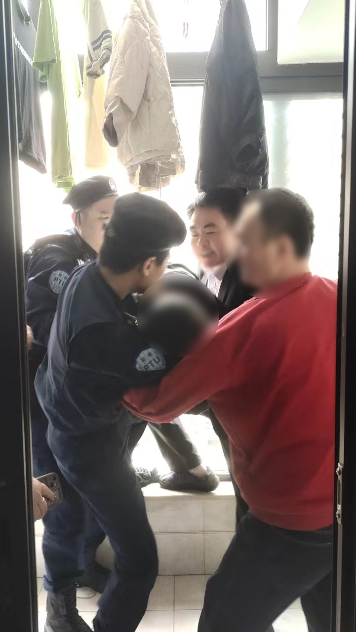 凌邵凱和李梟琦很快趕到事發(fā)小區樓下,發(fā)現一名女子趴在12樓陽(yáng)臺上,一只腳已經(jīng)懸空,一名男子正拉著(zhù)她的雙手,似乎還在爭執著(zhù)什么。兩人見(jiàn)狀,快速跑到12樓,使勁地敲門(mén)卻一直沒(méi)人開(kāi)門(mén),防盜門(mén)堅固又一時(shí)難以破門(mén)而入。