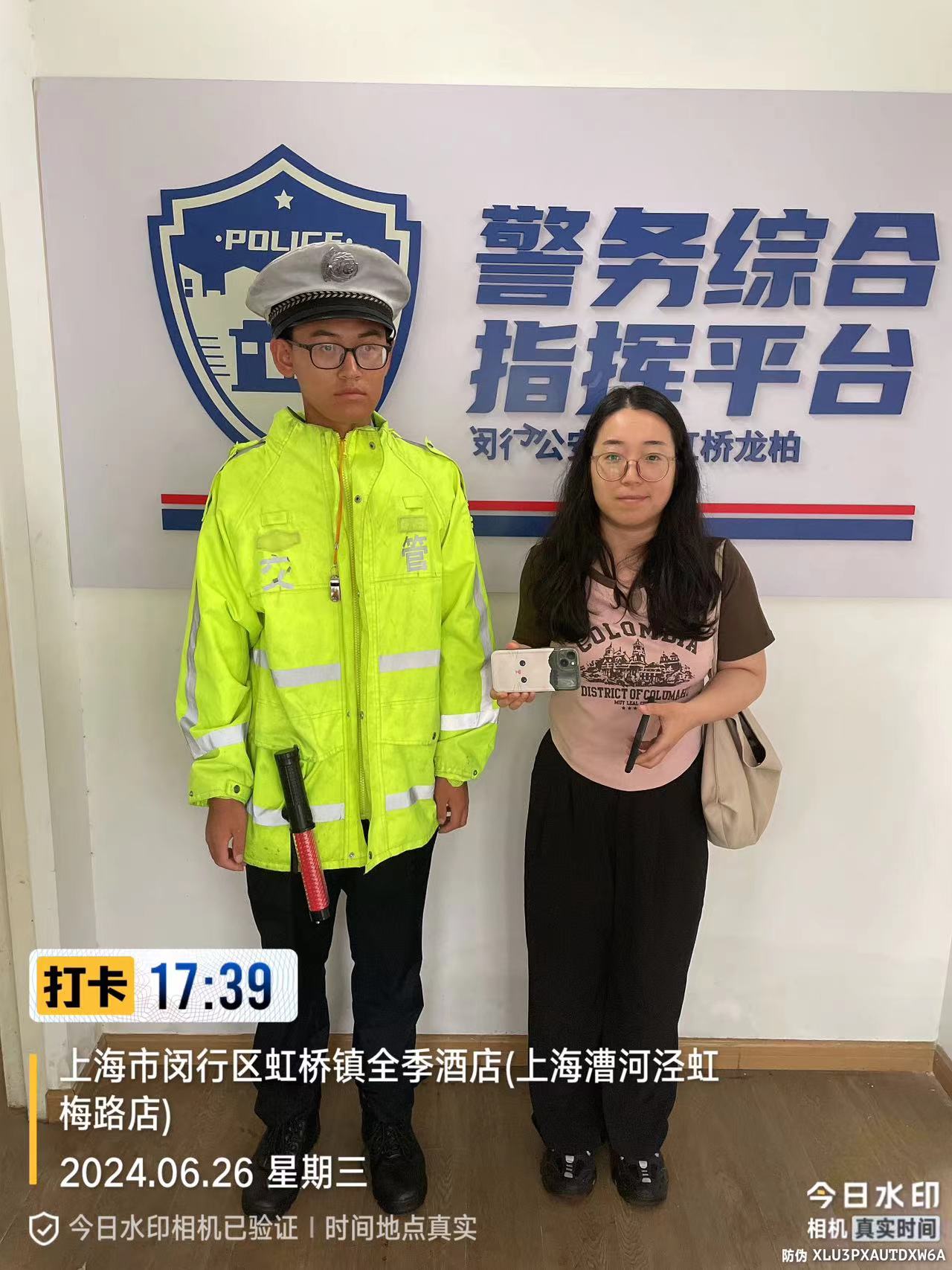 宗保公司駐閔行區虹橋交管輔助項目員工撿到蘋(píng)果手機交還失主