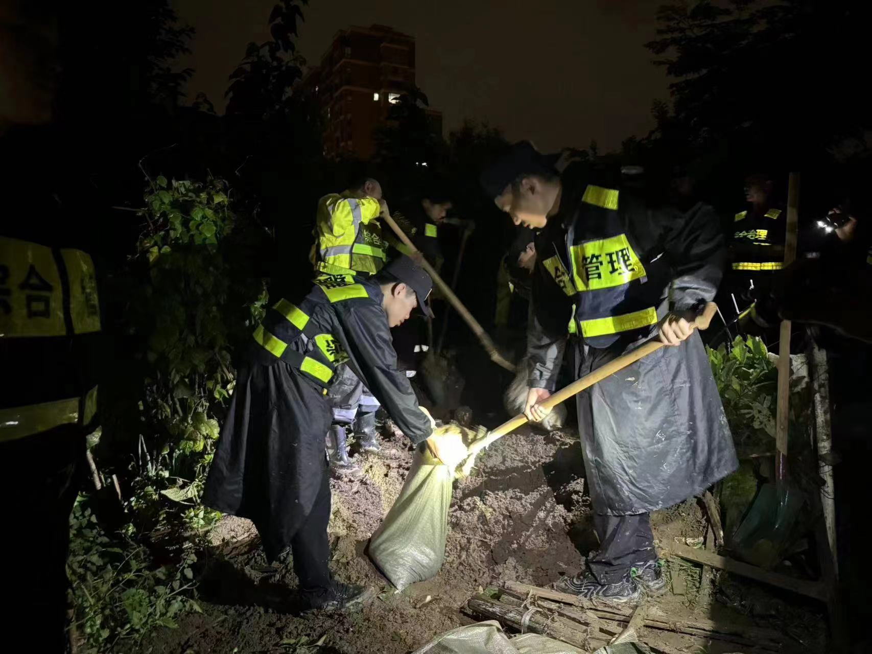 情況緊急,時(shí)間緊迫。6月27日19:30,浙江民泰公司駐余杭區閑林市容項目接到閑林城管中隊應急抗洪通知,請立即組織人員趕赴一米幼兒園段圍堰漫堤現場(chǎng),支援圍堰增高作業(yè)。