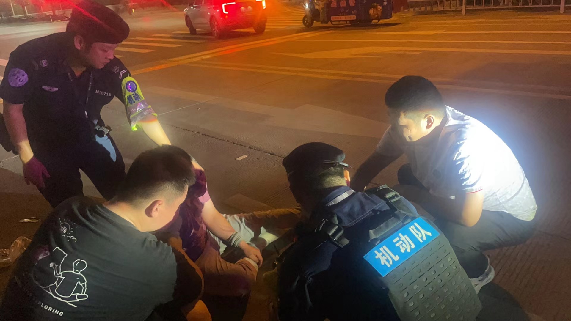 為保障男子安全,幾人決定把醉酒男子移至路邊安全地帶,正在這時(shí)男子蘇醒過(guò)來(lái),口中一直喊著(zhù)自己不想活了,說(shuō)想到藥店買(mǎi)藥走著(zhù)走著(zhù)就走不動(dòng)了。楊有福反復詢(xún)問(wèn)醉酒男子家庭住址和身份信息,但男子始終不肯告知,而且不停地用頭撞地,有輕生行為。