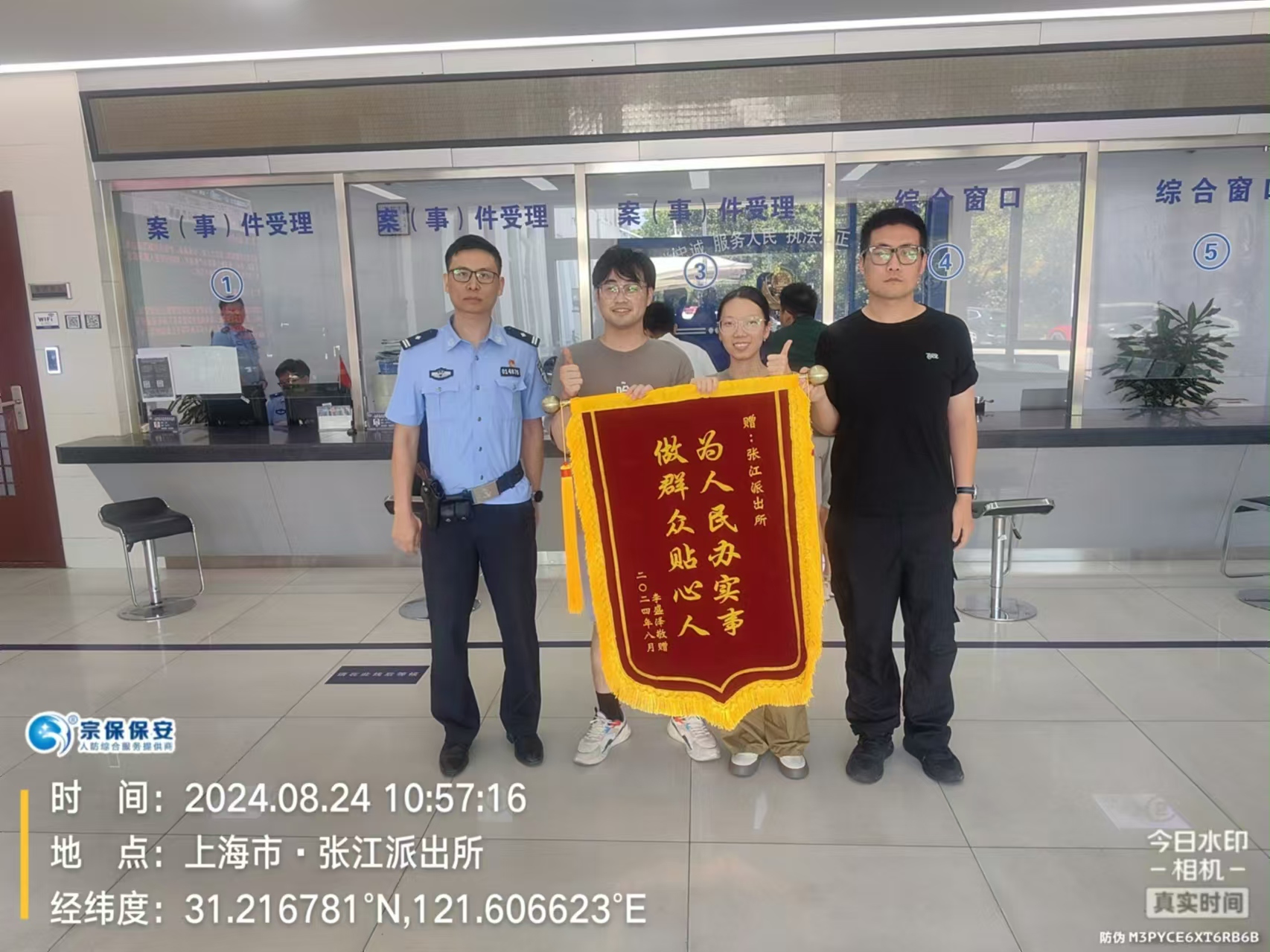 8月24日,浦東新區公安分局張江派出所收到市民李先生贈送的一面繡有“為人民辦實(shí)事 做群眾貼心人”的錦旗,感謝宗保公司駐張江派出所項目員工董晉春和范利峰幫其找回丟失的電瓶車(chē)。