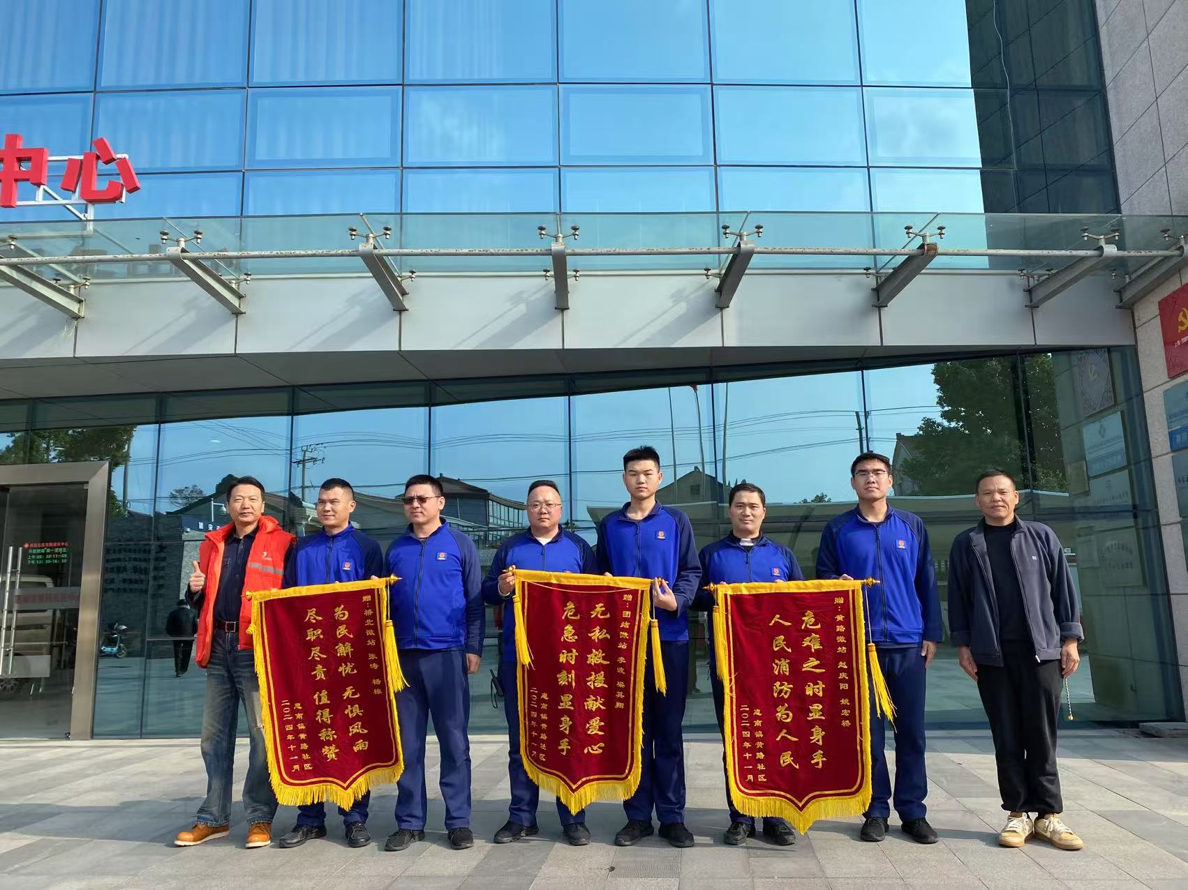 浦東新區惠南鎮惠園微站獲贈繡有“危難之時(shí)顯身手 人民消防為人民”的錦旗、徐廟微站獲贈繡有“無(wú)私救援獻愛(ài)心 危急時(shí)刻顯身手”的錦旗、惠城微站獲贈繡有“為民解憂(yōu) 無(wú)懼風(fēng)雨 盡職盡責 值得稱(chēng)贊”的錦旗