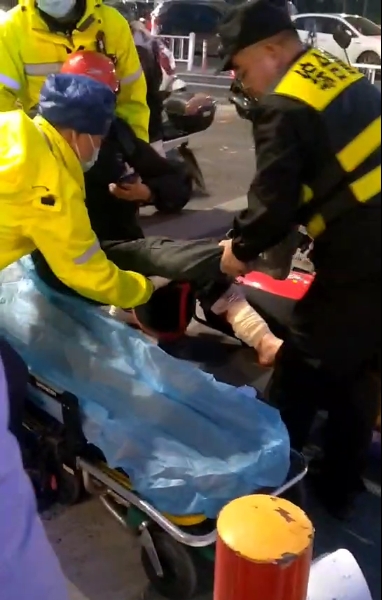 很快,120急救車(chē)趕到現場(chǎng),但該女士已經(jīng)陷入昏迷狀態(tài),醫護人員初步診斷其為左腿骨折,對其進(jìn)行了緊急處理。隨后,李建軍又協(xié)助醫護人員將女士抬上救護車(chē),送往醫院救治。