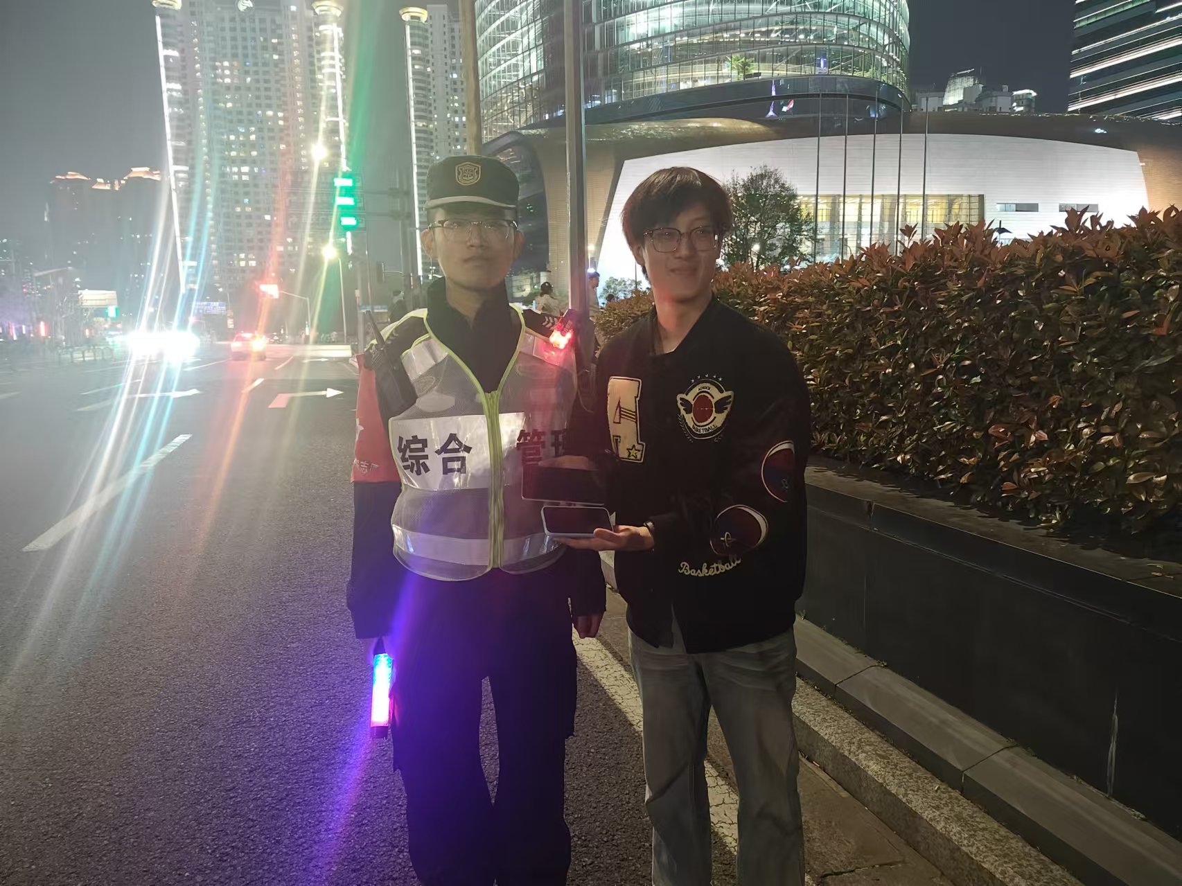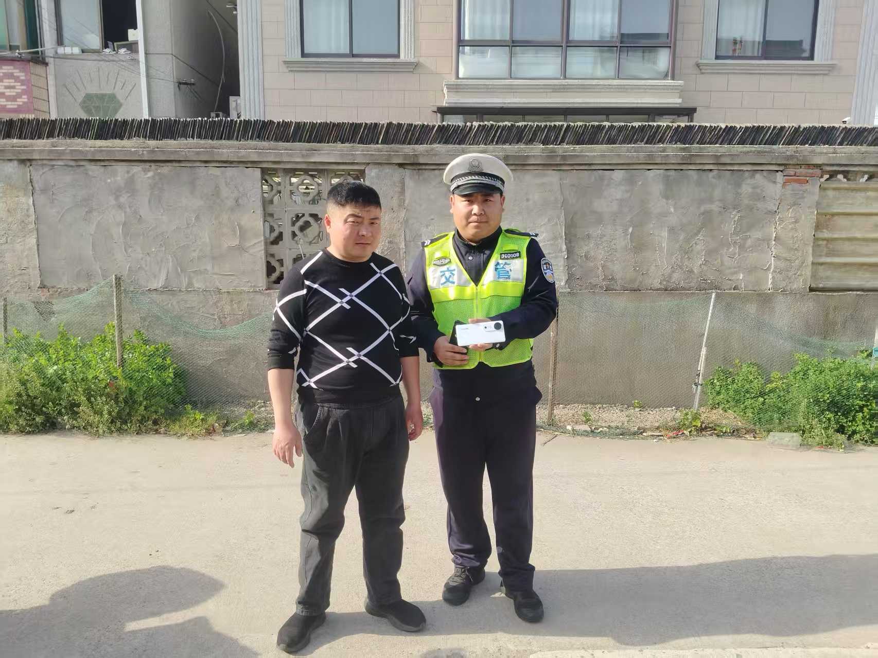 約半小時(shí)后,一位身穿灰白色外套的男子來(lái)到交警崗亭。通過(guò)男子成功解鎖手機鎖屏,確認其是失主后,李洋就把手機歸還給了他。男子拿著(zhù)手機,連連為李洋拾金不昧的行為點(diǎn)贊。