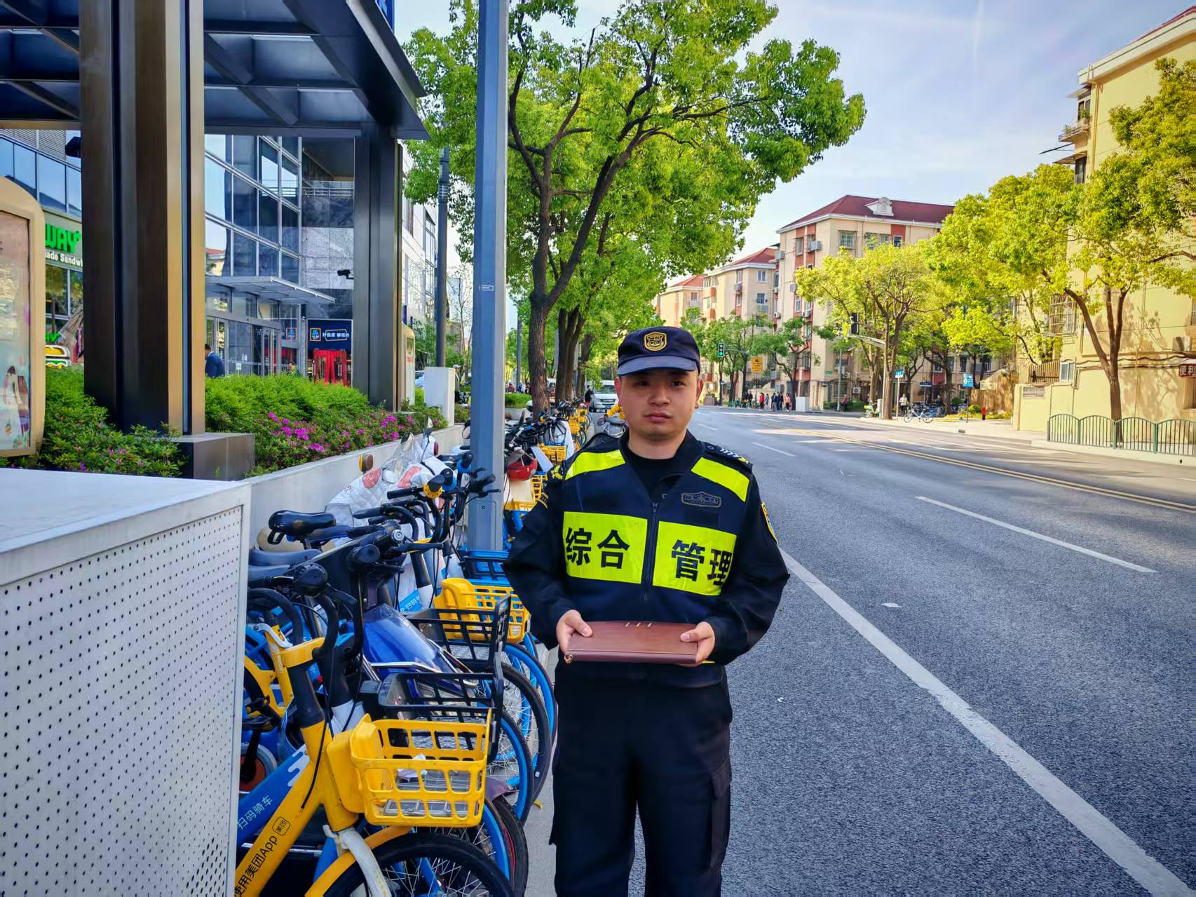 4月10日14:10,宗保公司駐浦東新區陸家嘴綜合管理項目員工彭雙在商城路地鐵9號線(xiàn)3號口附近巡邏時(shí),發(fā)現一部華為手機遺落在哈羅單車(chē)車(chē)筐內??紤]到失主可能會(huì )返回尋找,彭雙一邊繼續巡邏,一邊在原地耐心等待。