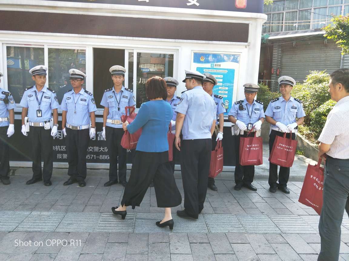 今天下午區政協(xié)主席阮文靜,區人大副主任白美玉,副區長(cháng)葛建偉,區公安分局副局長(cháng)徐義峰冒著(zhù)酷暑來(lái)我閑林街道進(jìn)行“送清涼”慰問(wèn)活動(dòng)。 盛夏時(shí)節,驕陽(yáng)似火,區政協(xié)主席阮文靜,區人大副主任白美玉,副區長(cháng)葛建偉,區公安分局副局長(cháng)徐義峰對頂烈日、戰高溫,始終堅持在一線(xiàn)的閑林交通安全工作站的隊員進(jìn)行了親切慰問(wèn),并對隊員們?yōu)樯鐣?huì )做出的貢獻表示感謝,并一一握手親切說(shuō)到“同志們辛苦了”!區領(lǐng)導對閑林交通安全工作站隊員的工作也進(jìn)行了充分的肯定和認可,同時(shí)也再三囑咐工作站的隊員在工作中注意避暑防暑