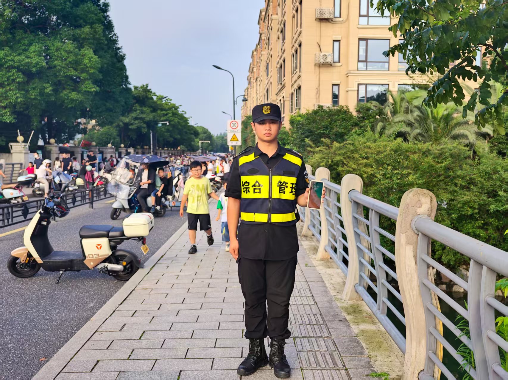 6月5日18:00 ,宗保公司駐閔行區莘莊工業(yè)區項目員工龍彪在鑫都實(shí)驗中學(xué)護校時(shí),撿到一部華為手機,詢(xún)問(wèn)路人無(wú)人認領(lǐng)后,便在學(xué)校門(mén)口邊執勤邊等待失主。