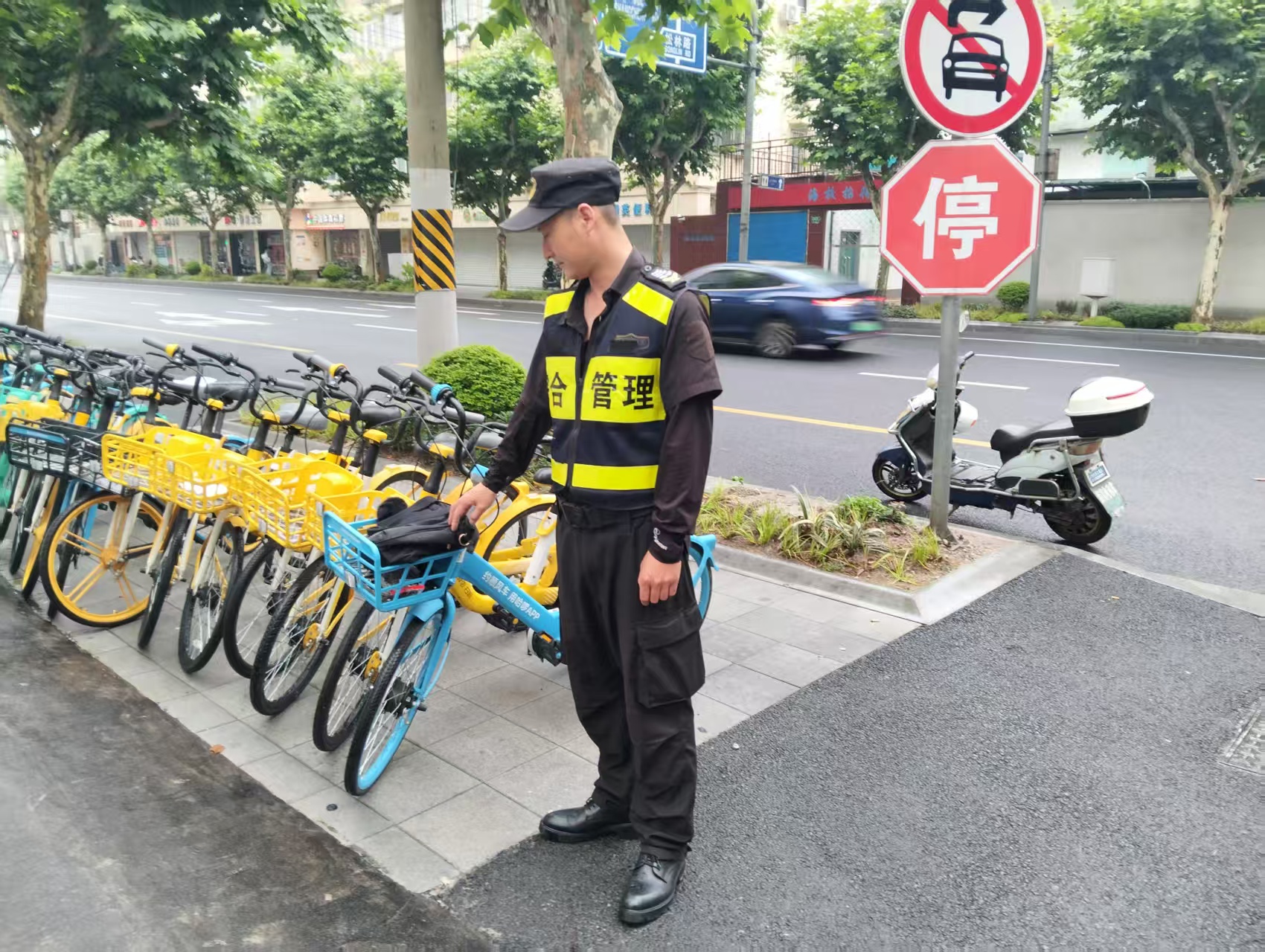 6月13日6:20,宗保公司駐浦東新區陸家嘴社區市容項目員工劉飛在乳山路光輝小區附近整理亂停放共享單車(chē)時(shí),在一輛單車(chē)的車(chē)筐里發(fā)現了一個(gè)手提包,內有三張價(jià)值500元的購物卡、大閘蟹會(huì )員卡、銀行卡、信用卡以及若干現金等,但是里面沒(méi)有失主的聯(lián)系方式。