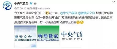 9月13日,中央氣象臺宣布,與香港天文臺和澳門(mén)地球物理暨氣象局一起就臺風(fēng)山竹及其未來(lái)的影響進(jìn)行視頻會(huì )商,這也是中國氣象歷史上第一次三地聯(lián)合會(huì )商,可見(jiàn)臺風(fēng)山竹的重要性。