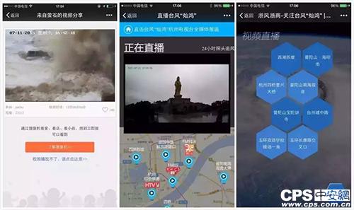 在2015年臺風(fēng)“燦鴻”侵擾期間,螢石合作央視進(jìn)行臺風(fēng)直播。據悉,螢石充分調動(dòng)其在臺風(fēng)區中的監控點(diǎn)位,全天候直擊臺風(fēng)登陸前后24小時(shí)的災區實(shí)景。為有需要的個(gè)人及部門(mén)提供了實(shí)時(shí)更新的視頻應用,為災后救援提供了最直觀(guān)的信息來(lái)源。