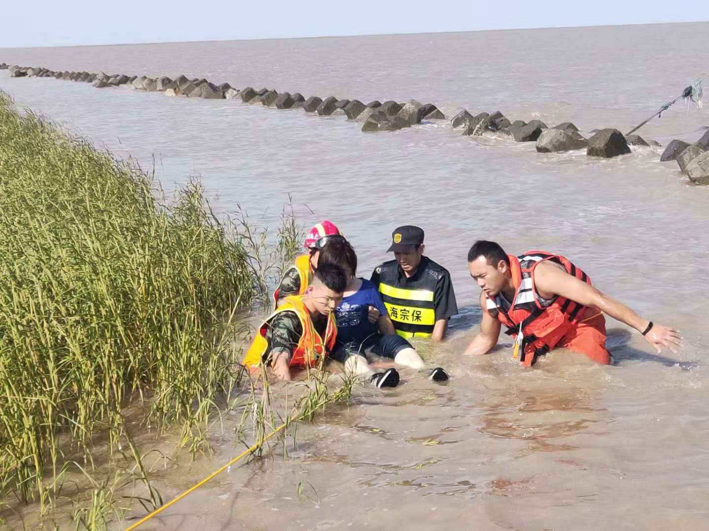 國慶假日,上海臨港,游人如織。海邊的觀(guān)海嘴公園風(fēng)景如畫(huà),更是游樂(lè )的好去處。不少游客不顧提醒、勸阻,擅自翻躍海堤,到海灘上嬉戲。這兩名青年男女甚至到更遠的礁石上玩耍,女游客因腿部扭傷,在漲潮時(shí)無(wú)法及時(shí)撤離,兩人被海水困住了。
