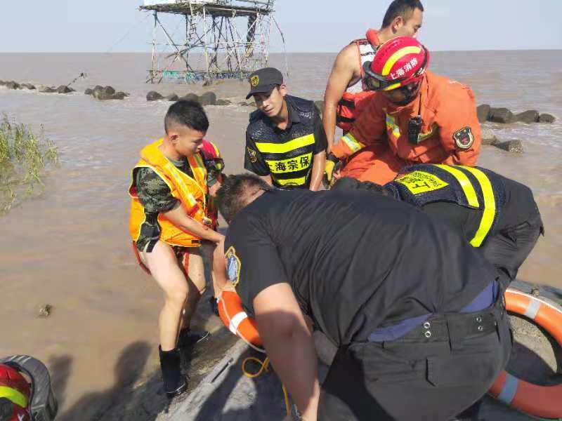 上海宗保保安服務(wù)有限公司南匯新城項目的城管輔警隊員呂永峰、周柳星、羅玉壽發(fā)現這一險情后,一邊向值班人員匯報,一邊報警請求救援。待消防隊員趕到現場(chǎng)后,積極參與救援。最終,在多方努力下,受困的游客成功獲救。