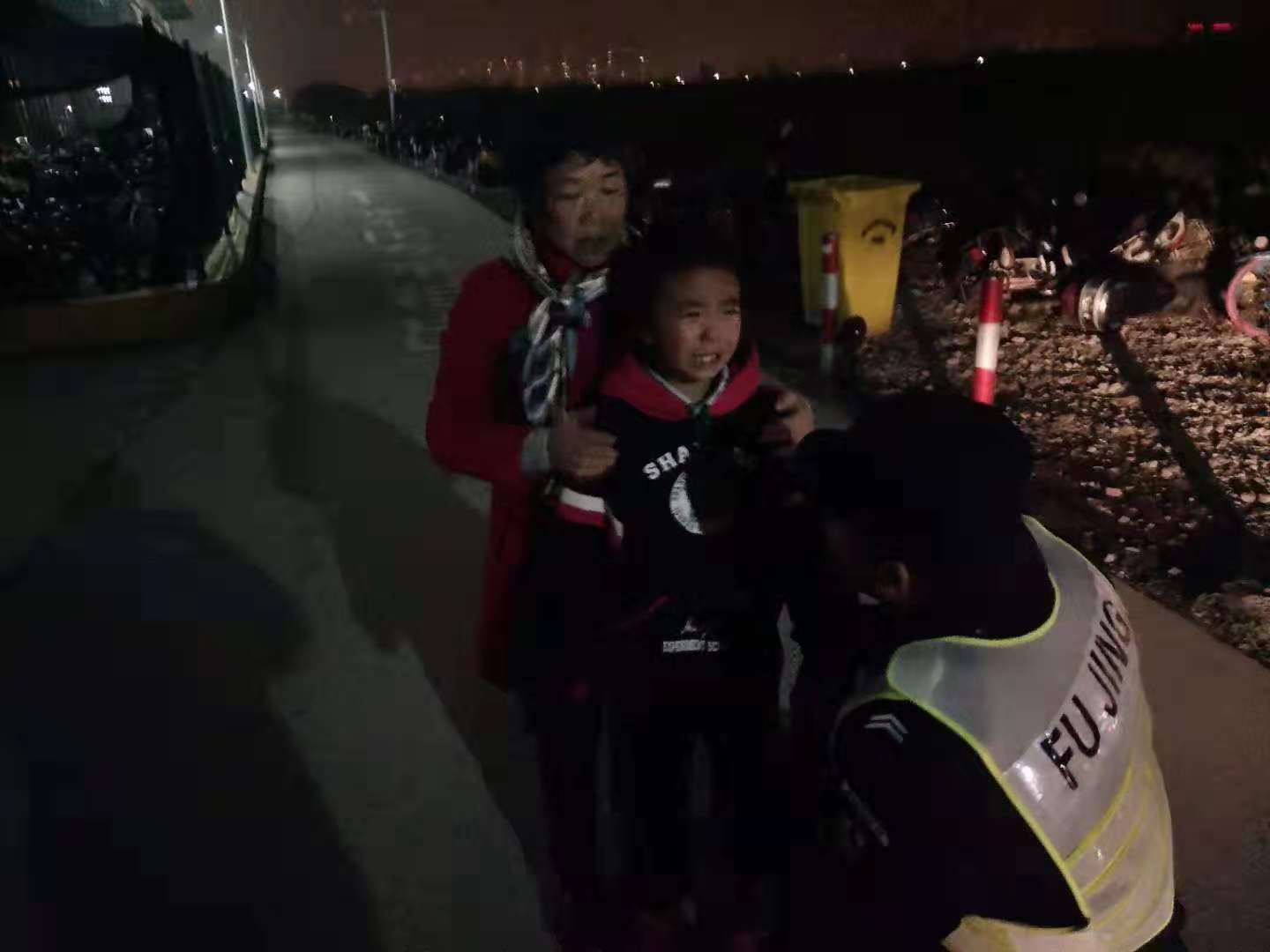 當日20:15分左右,宗保隊員駐周東輔警項目隊員正在地鐵站附近執勤時(shí),遠處孩子的哭泣聲讓他們加快步伐跑過(guò)去。 原來(lái)是一個(gè)8歲的小女孩,叫萌萌。孩子因為要去姑姑家里玩,但是她的父母不帶她去,和父母慪氣一個(gè)人離家出走。宗保隊員從萌萌那得知了她父母的電話(huà),立即致電家長(cháng),讓其來(lái)接孩子。當在外找尋了3小時(shí)的萌萌媽媽?zhuān)娇吹匠鲎叩呐畠簳r(shí),激動(dòng)了流下了淚水,并對宗保隊員幫其找到孩子表示感謝。