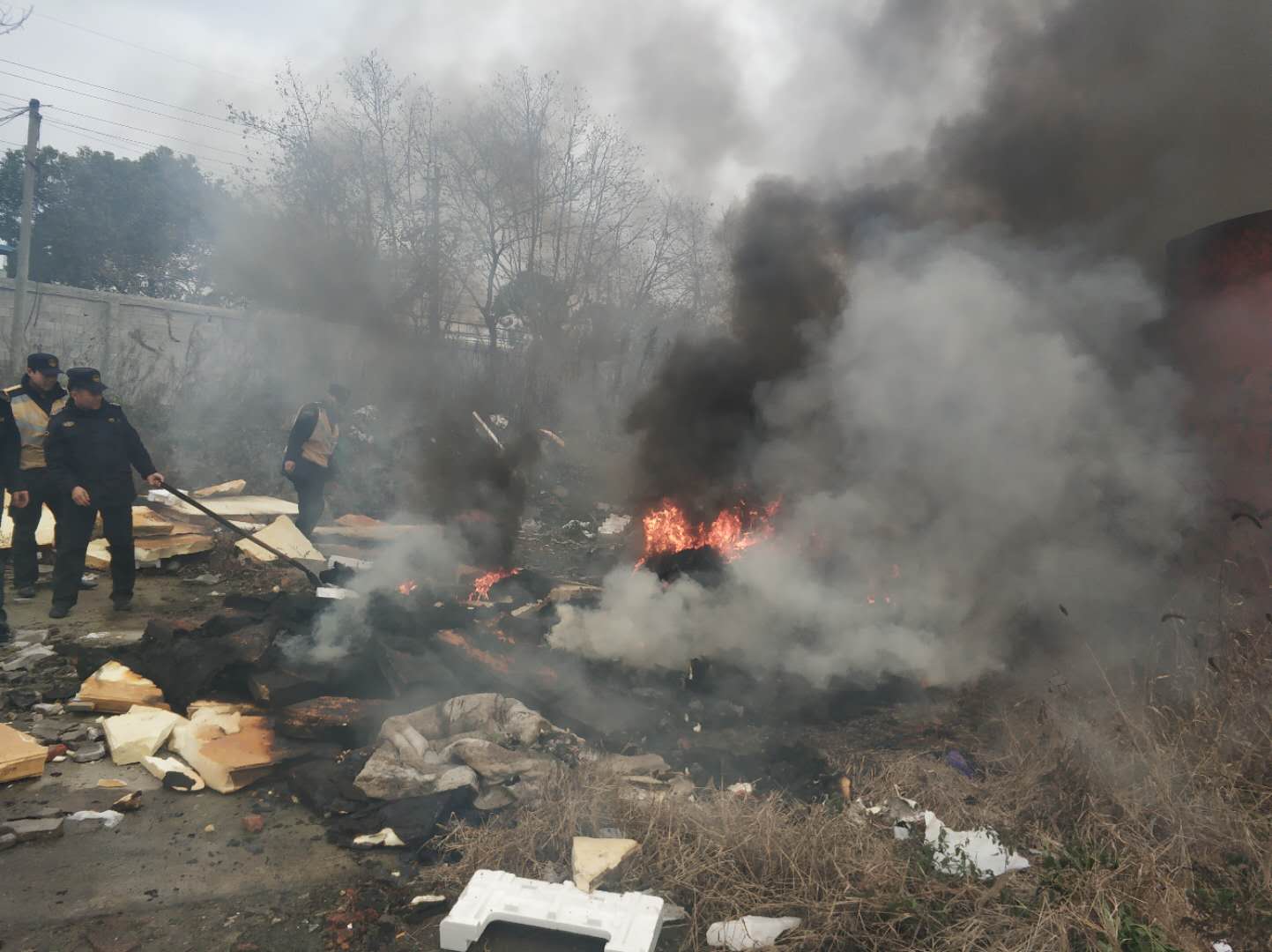 2018年12月31日14:16,宗保隊員駐金橋市容隊員胡成林、張?chǎng)卧谘膊橹撂坡仿吩S加溝橋西側,發(fā)現圍墻內有濃煙。細心查看,發(fā)現圍墻內堆放的廢舊泡沫在燃燒。若不及時(shí)處理,火情將持續蔓延,危及周邊群眾安全,造成空氣污染。面對這種情況,隊員立即上報區域負責人,同時(shí)撥打了119火警電話(huà)。負責人第一時(shí)間趕至現場(chǎng),指揮隊員搬移泡沫,控制火情蔓延,并安排隊員進(jìn)行安全警戒,疏導勸離圍觀(guān)群眾。消防人員于14:27到達現場(chǎng)進(jìn)行滅火,14:43火情徹底被熄滅,未造成人員和財產(chǎn)損失。