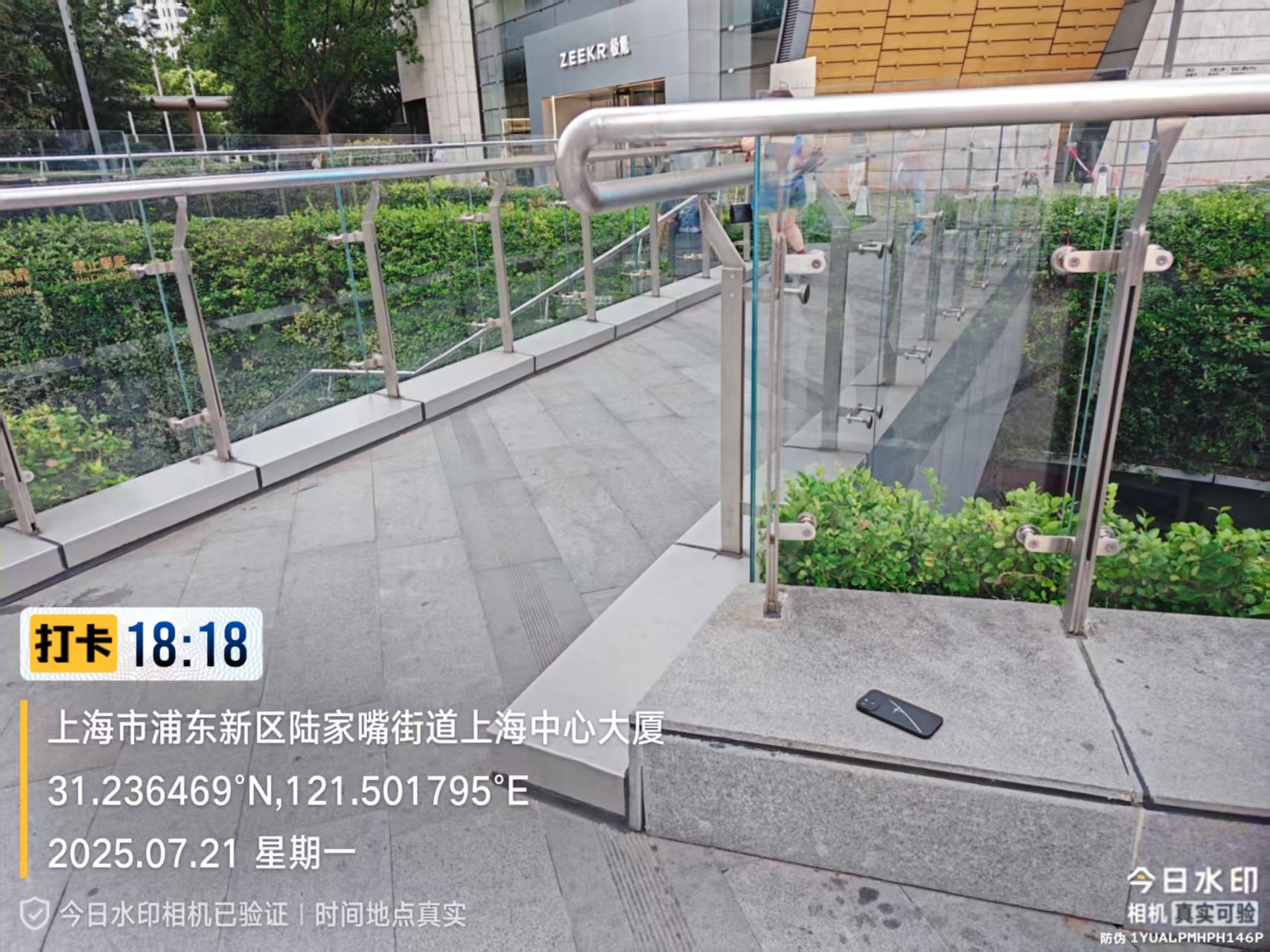 7月21日18:18,宗保公司駐浦東新區陸家嘴綜合管理項目員工任藝珂在金茂大廈黑攝影附近巡邏時(shí),撿到一部蘋(píng)果手機??紤]到失主丟了手機可能會(huì )返回尋找,便決定在原地邊巡邏邊等待失主。