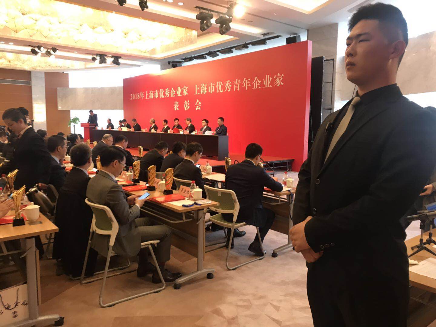 2019年2月26日,宗保公司駐陸家嘴項目在甲方領(lǐng)導的指導、組織下,圓滿(mǎn)完成2018年上海市優(yōu)秀企業(yè)家、上海市優(yōu)秀青年企業(yè)家評選表彰會(huì )安全保障任務(wù)。