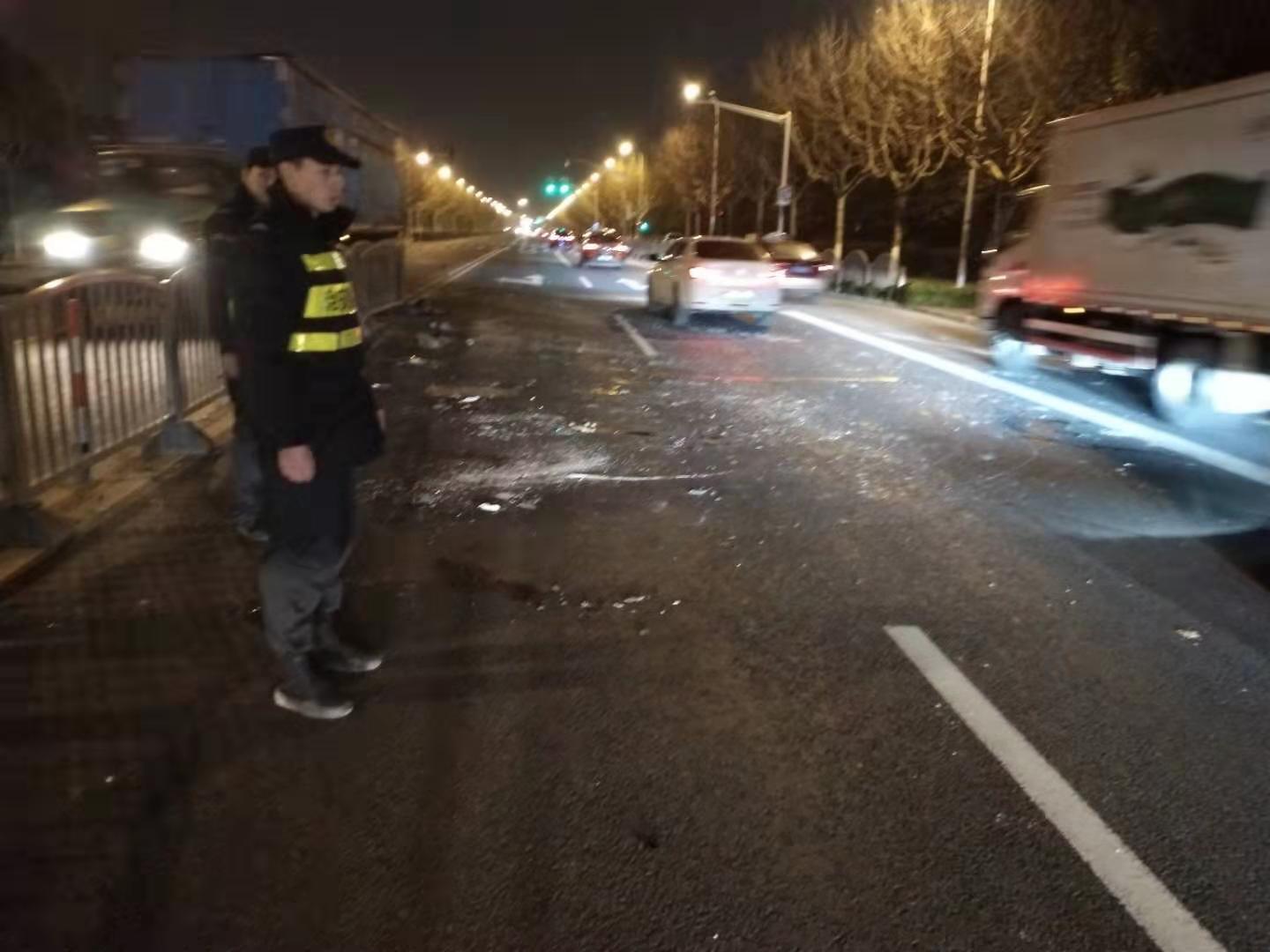 當晚19:20,宗保駐金橋輔警項目隊員張祿祿、高景在申江路地鐵站附近巡邏時(shí),突然聽(tīng)到一聲巨響,兩人聞聲趕去,原來(lái)發(fā)生了一起交通事故。一輛小型面包車(chē)撞在馬路中間的護欄上,發(fā)生了側翻,導致護欄大面積損壞。車(chē)內只有駕駛員一人,詢(xún)問(wèn)駕駛員,表示無(wú)大礙。