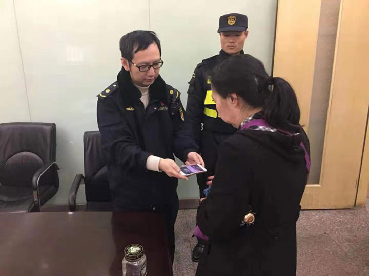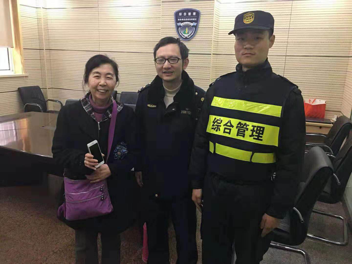 下午15:00時(shí),失主老奶奶至城管中隊,經(jīng)核對無(wú)誤,城管隊員將手機交還給失主,老奶奶再三表示感謝,并要支付酬金給撿到手機的特保隊員。隊員當即表示不用酬謝。