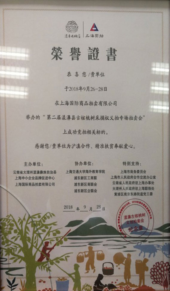 2018年,公司參與“助力漾濞,精準扶貧”古核桃拍賣(mài)會(huì )。