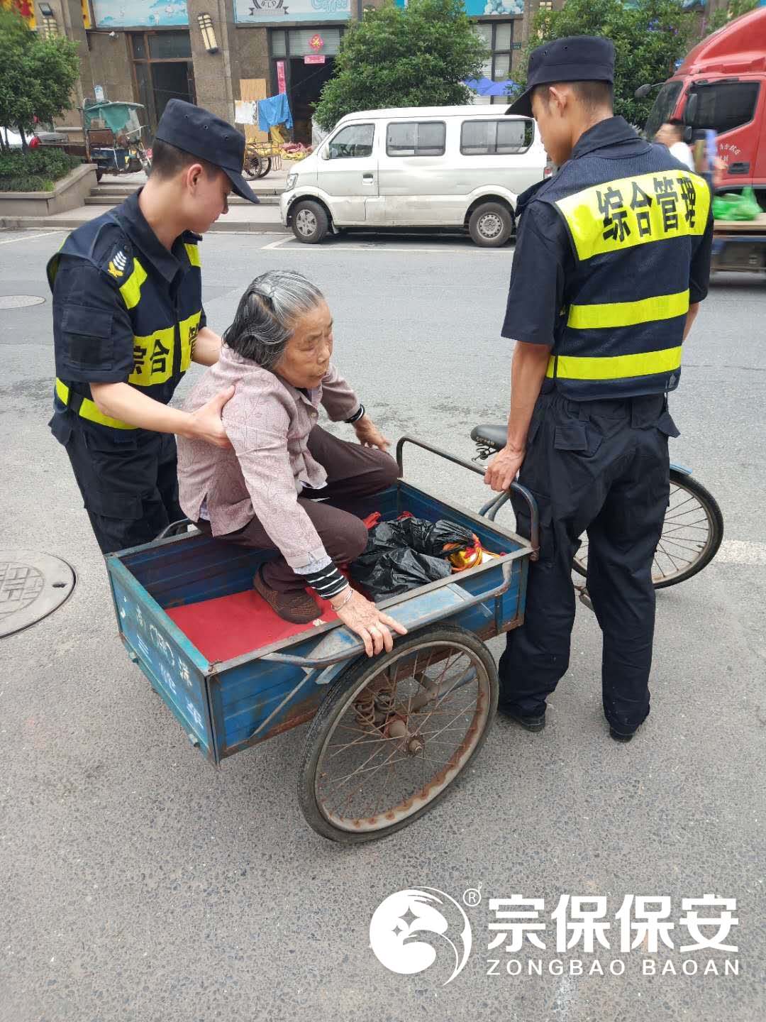 當日09:00左右,良渚項目隊員楊天佑、單洪江、倪承福巡查至逸盛路港虹西路路口時(shí),發(fā)現一位老人,神情焦慮。經(jīng)詢(xún)問(wèn),老人要去買(mǎi)藥,找不到藥店且不記得回家的路。三名隊員先帶老人去買(mǎi)藥,試圖聯(lián)系其家屬,但聯(lián)系不上。