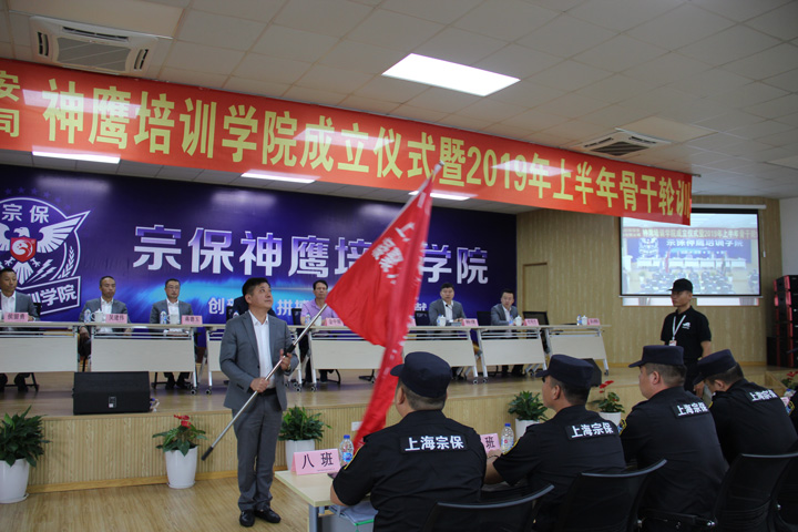 6月14日08:00,在宗保公司基地大禮堂,舉行宗保神鷹培訓學(xué)院成立儀式暨2019年上半年骨干輪訓開(kāi)班。上海宗保保安服務(wù)有限公司董事長(cháng)馮中保、總經(jīng)理晏軍及公司幾位副總悉數出席。