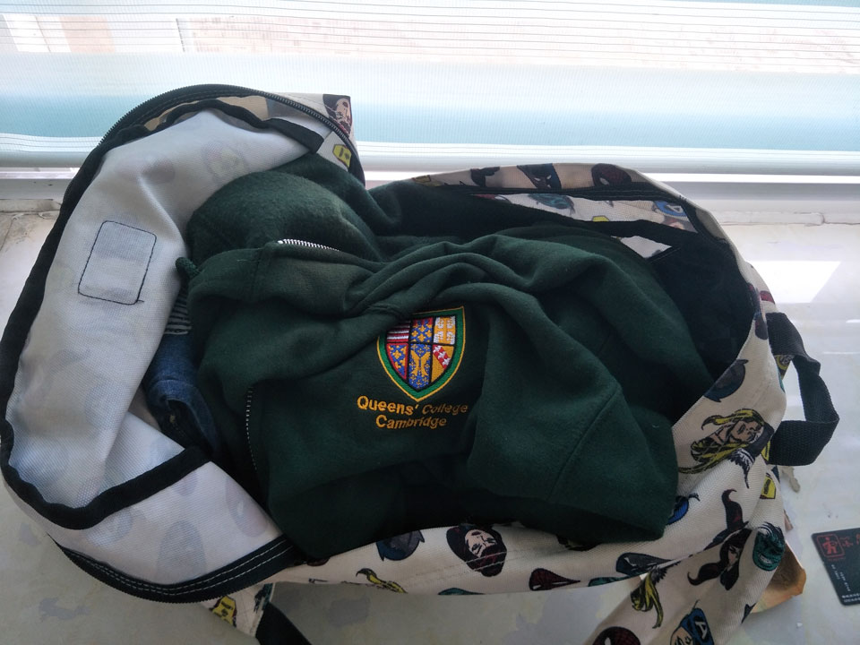 經(jīng)民警開(kāi)包檢查:內有現金120元,準考證一張,購物卡一張,衣服、食品等物品。