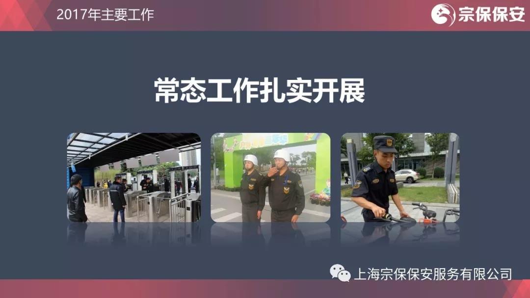不忘初心,牢記使命。2017年,全公司配合城管勸導流動(dòng)攤販637836起,勸阻跨門(mén)經(jīng)營(yíng)約528907起,引導、擺放車(chē)輛1639497輛;配合民警盤(pán)查人員285684人、盤(pán)查非機動(dòng)車(chē)372658次、盤(pán)查機動(dòng)車(chē)67344次、登記人口70多萬(wàn);配合交警清查非法營(yíng)運車(chē)輛6730輛、交通疏導496941人次。天量數據的背后,是宗保人對自己承諾的嚴格落實(shí),對甲方單位的認真負責,對業(yè)務(wù)工作的一絲不茍。