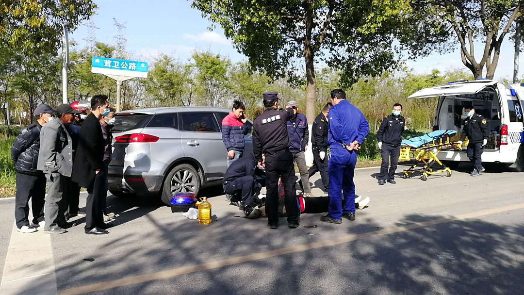 4月5日上午9點(diǎn)左右,宗保公司駐金山衛市容項目隊員張建華、賈鐵雕在上班途經(jīng)茸衛公路查梅路交叉口時(shí),目睹了一起車(chē)禍發(fā)生——一輛機動(dòng)車(chē)與一輛電瓶車(chē)相撞?,F場(chǎng)電瓶車(chē)的零碎部件散落在地上,電瓶車(chē)主受傷躺在路邊不能起身;機動(dòng)車(chē)駕駛員一時(shí)間嚇得六神無(wú)主,不知所措。