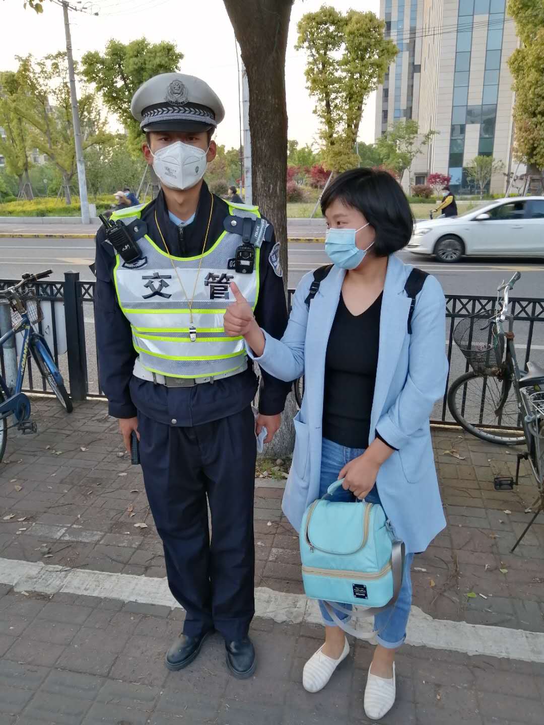 失主開(kāi)心的和小閆合影,并沖小閆豎起大拇指說(shuō):“雖然包里沒(méi)有什么重要的物品,但是我們的城市有這樣盡心盡責的守護者,我們真的很安心?!?br />