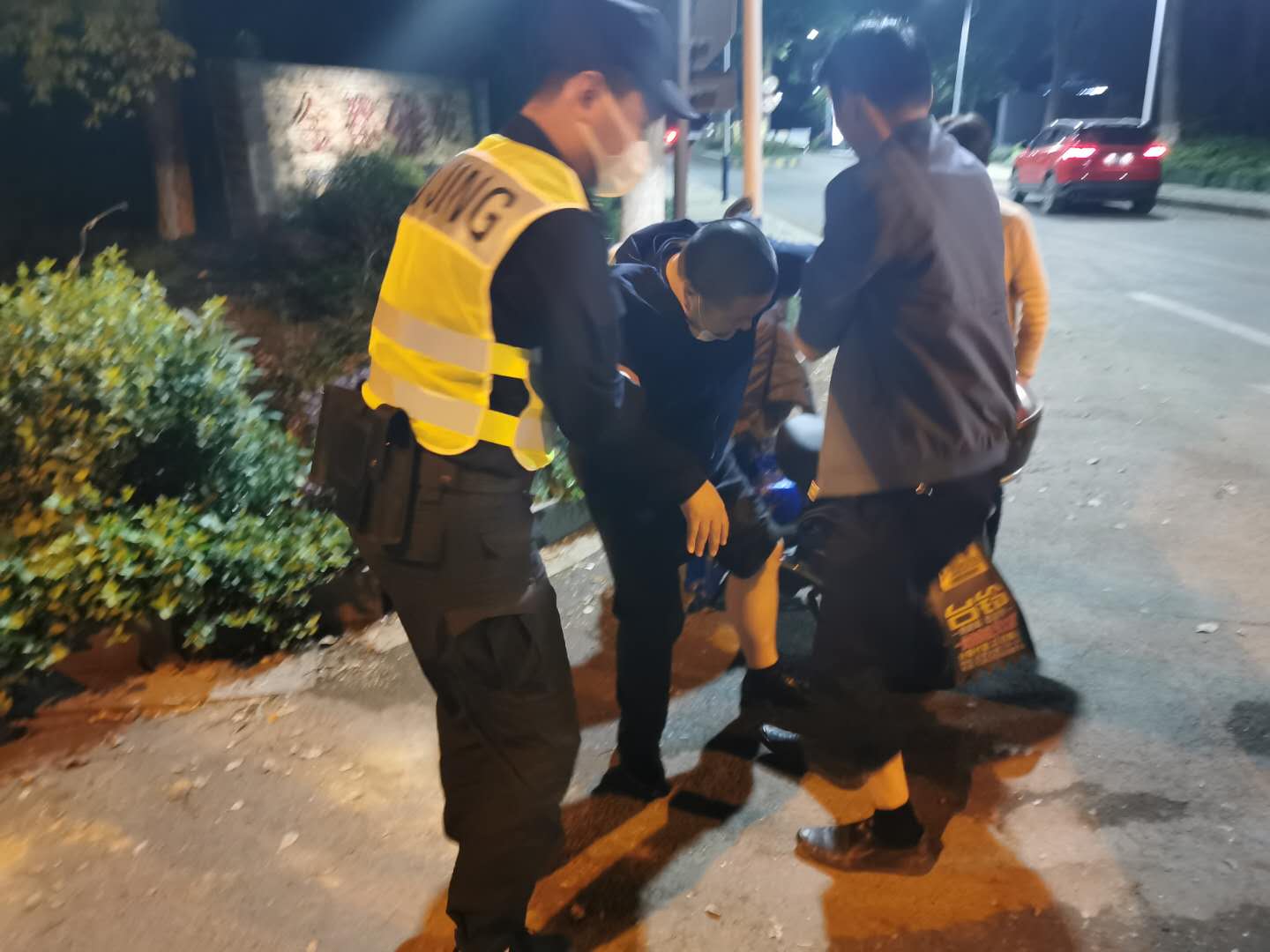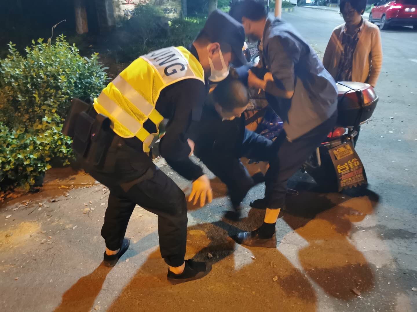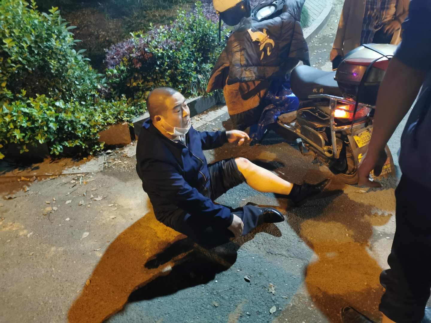 4月25日20:55,民泰公司駐閑林輔警項目隊員楊有福、宋昆鵬巡邏至天目路金都雅苑小區出口時(shí),看到一位大叔坐在地上,面露痛苦之色,旁邊還有一輛倒在地上的電瓶車(chē)。兩人趕緊上前,攙扶大叔起身的時(shí)候,檢查發(fā)現大叔的腳不能正常用力著(zhù)地,腳踝受傷嚴重,膝蓋也有些許擦傷。