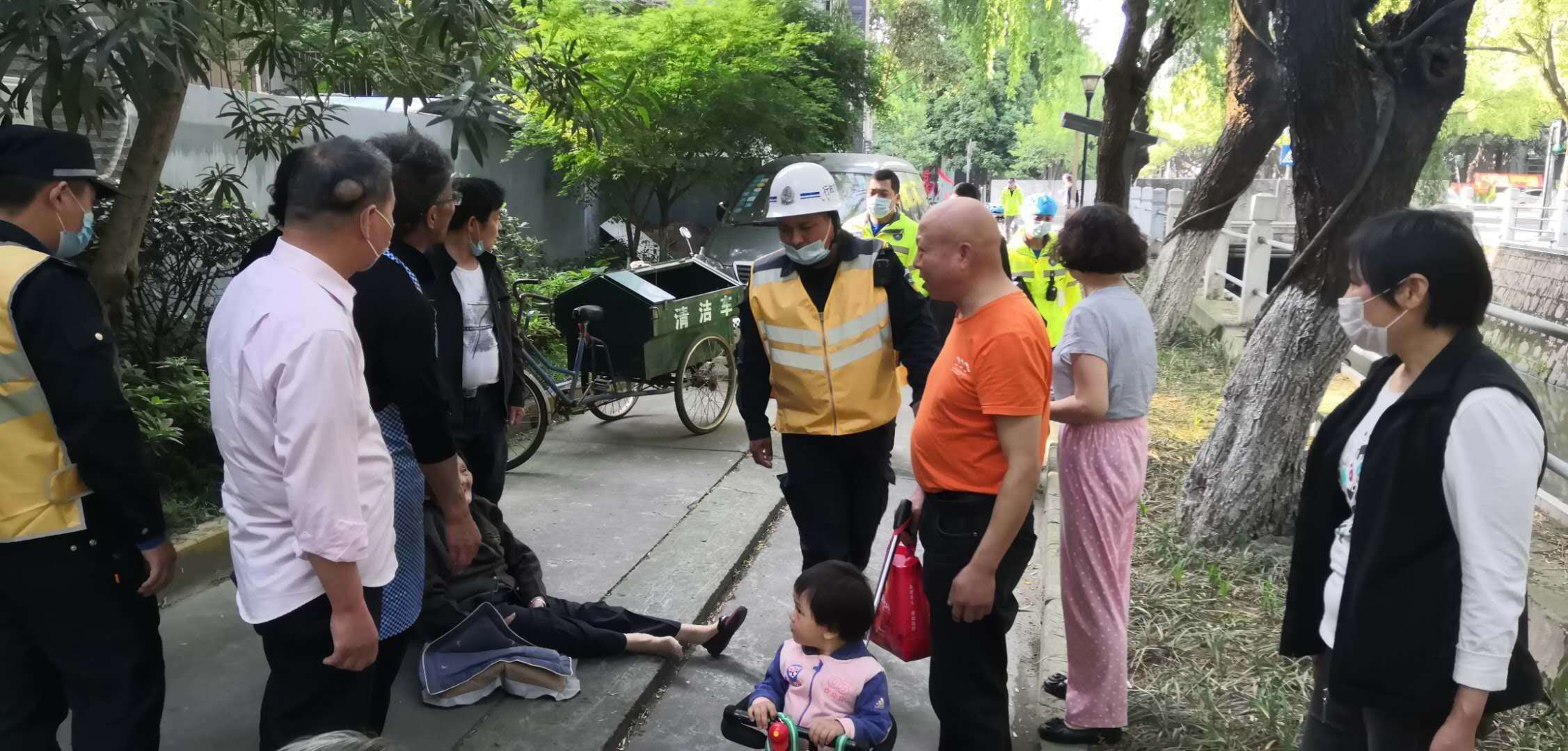 4月29日16:30,臨平街道九曲營(yíng)路與梅堰路口,一位外出遛彎的老太太突然摔倒在地,腿部傷勢過(guò)重無(wú)法起身。民泰公司駐臨平市容項目隊員張艮振正好巡邏至此,立馬跑過(guò)去查看老人傷勢,安慰老人情緒,并撥打120急救電話(huà)。