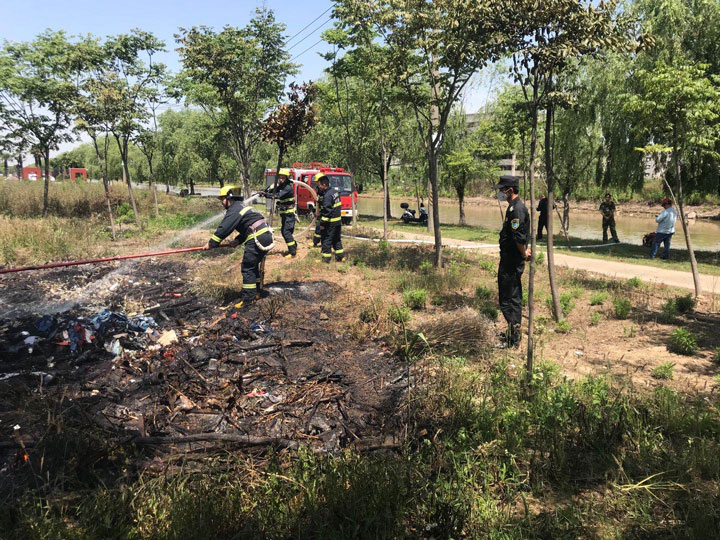 消防員趕到現場(chǎng)后,保安隊員全力協(xié)助進(jìn)行滅火。經(jīng)過(guò)半個(gè)多小時(shí)的撲救,火勢被徹底撲滅,避免了一場(chǎng)火災事故的發(fā)生。