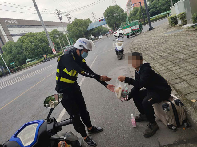 兩名隊員先到超市買(mǎi)來(lái)面包、水,隨后撥打110報警。民警到達現場(chǎng),詢(xún)問(wèn)情況后把小孩帶到附近醫院就診,并且聯(lián)系上小孩母親。
