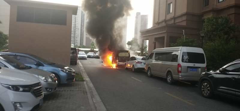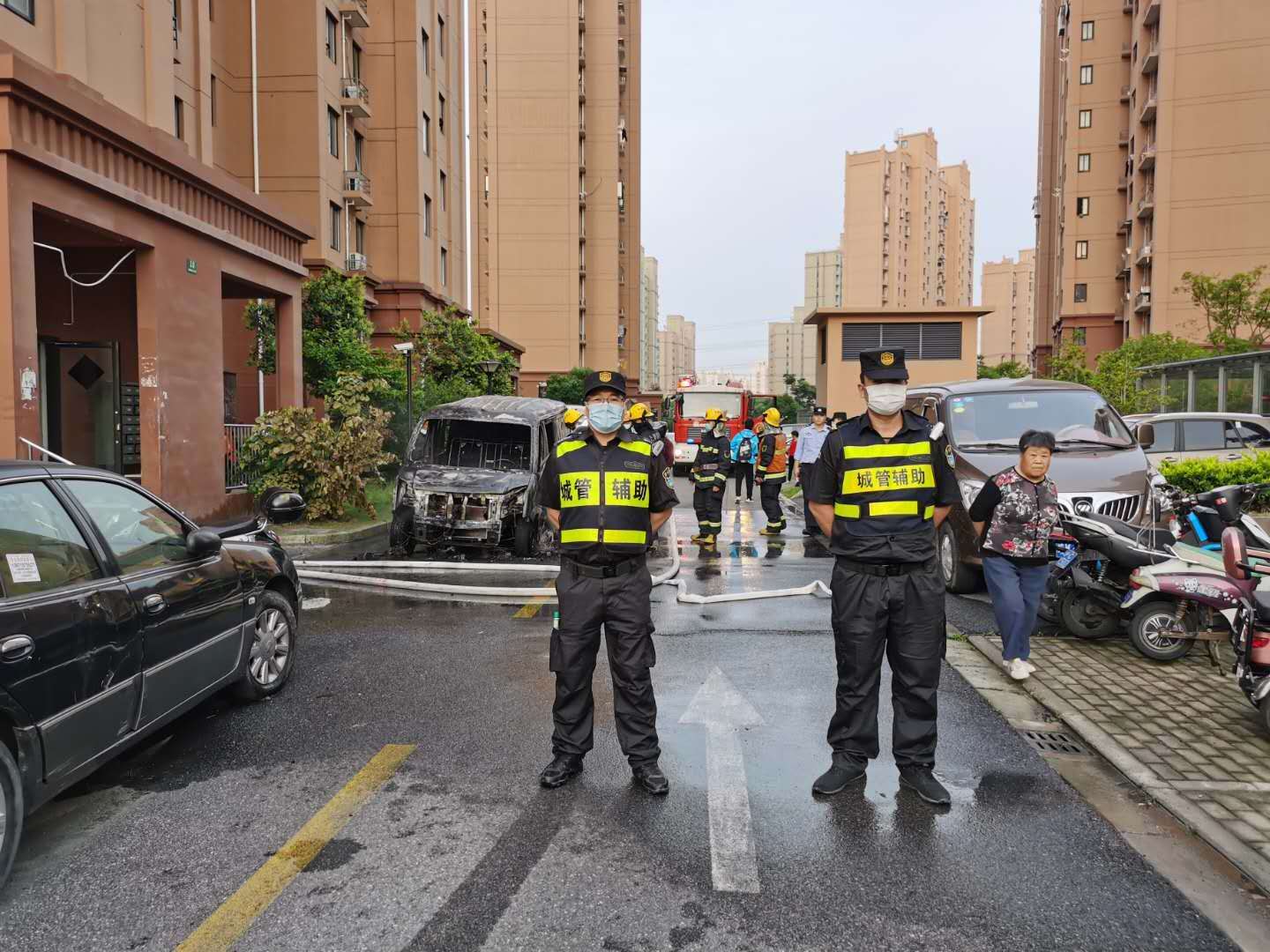 6月2日4:40,宗保公司駐周浦市容項目隊員胡德良在周陽(yáng)路泰豐里小區巡邏時(shí),發(fā)現一輛新能源汽車(chē)起火,現場(chǎng)濃煙滾滾,火勢較大。而且旁邊還停有幾輛汽車(chē),一旦發(fā)生爆燃,后果不堪設想。事不宜遲小胡急忙撥打119報警,并向當班組長(cháng)報告要求前來(lái)支援。