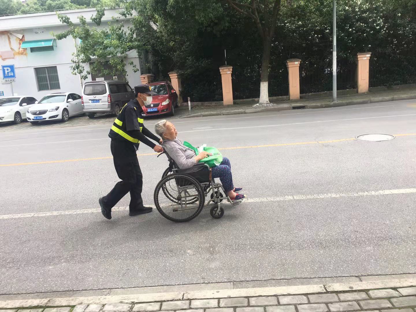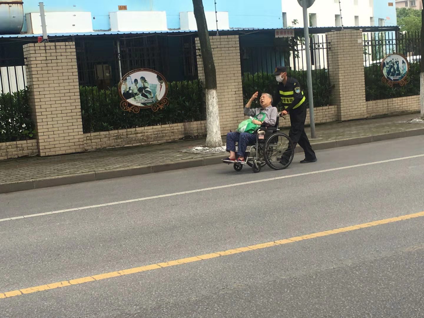 張柯旋急忙上前把老人推到路邊安全的地方,詢(xún)問(wèn)老人外出有沒(méi)有家人陪同。簡(jiǎn)短溝通后得知,老人獨自一人外出,家住瑞浦路8弄。因考慮到路程較遠,張柯璇不放心,在向組長(cháng)匯報情況后,決定客串一次“輪椅代駕”護送老人回家。